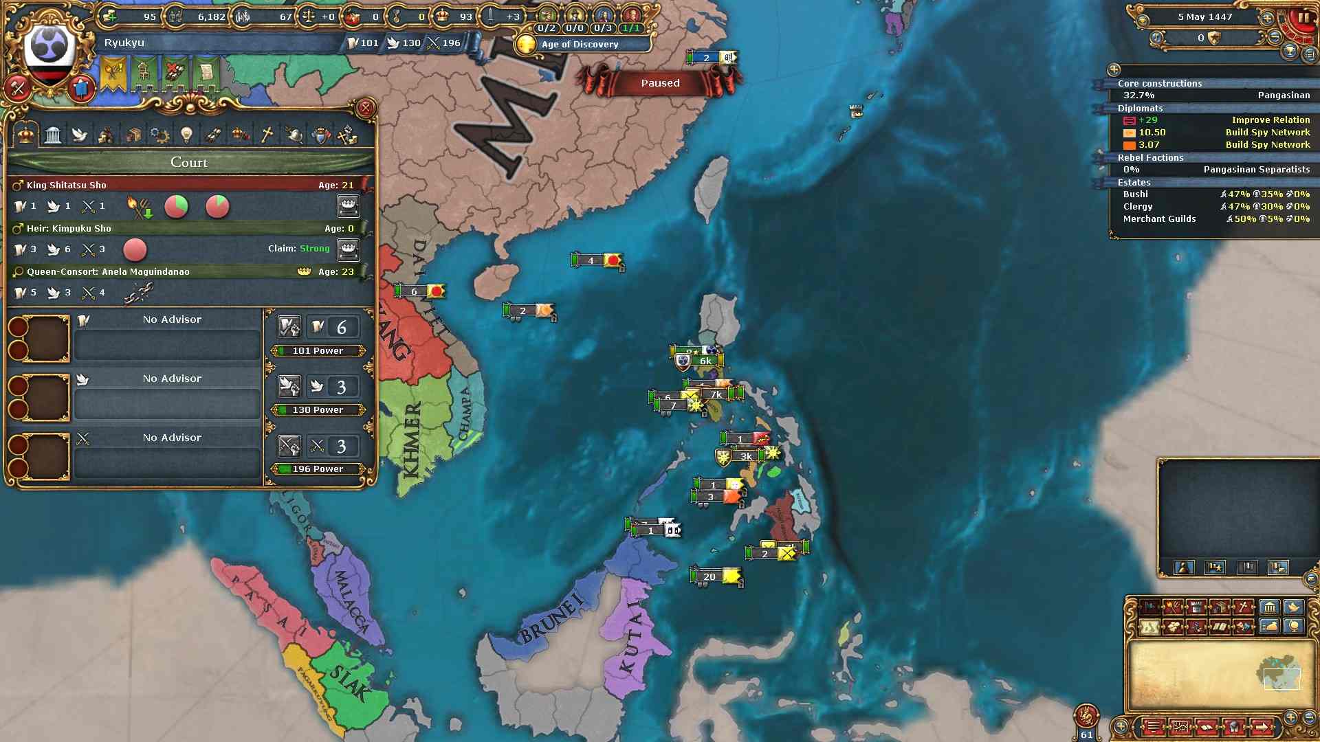 初期君主よりかなり有能なQueen Consortとなり俄然やる気になります。
