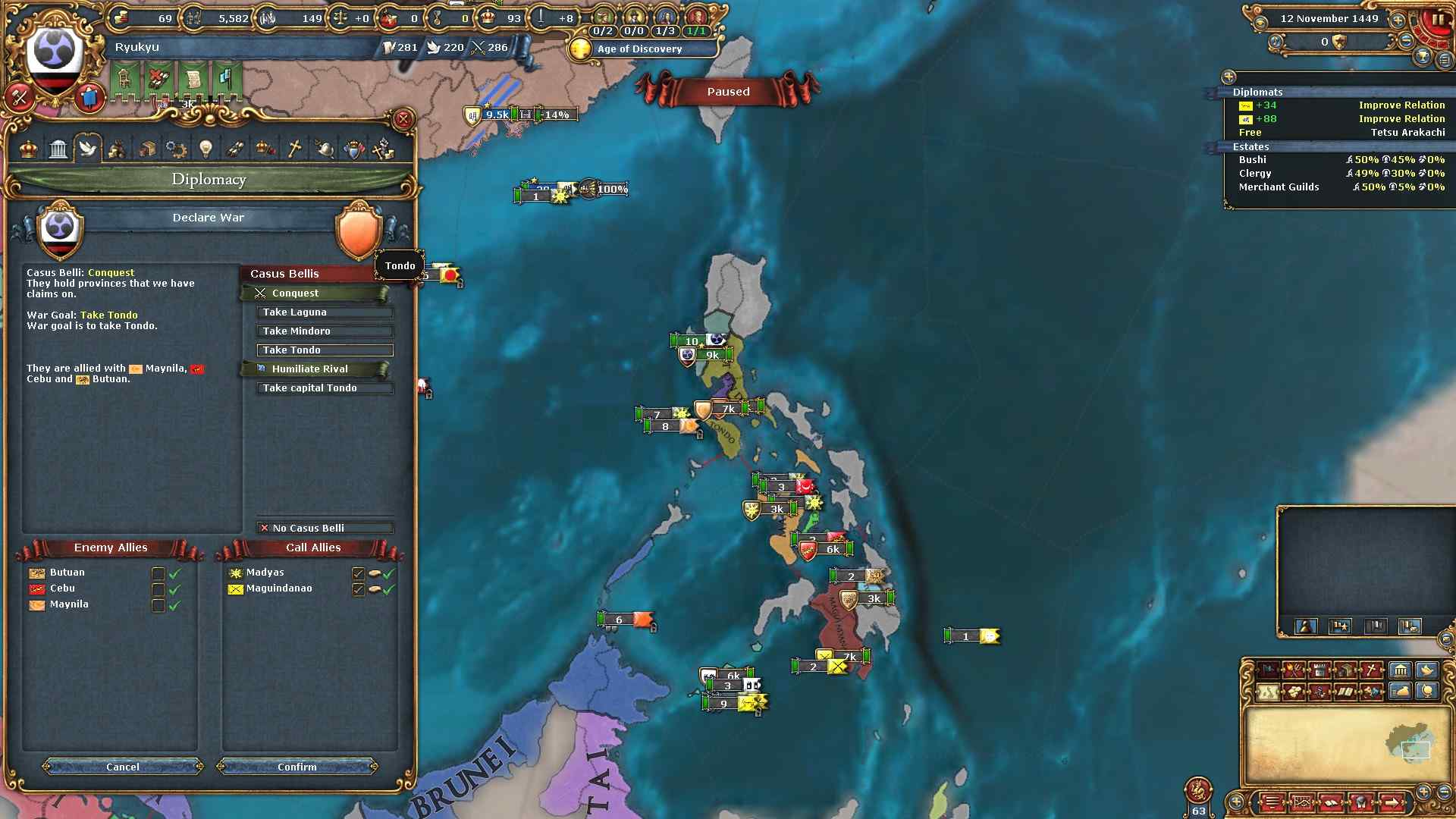 またTondo戦後しばらくは君主点を貯める期間になります。