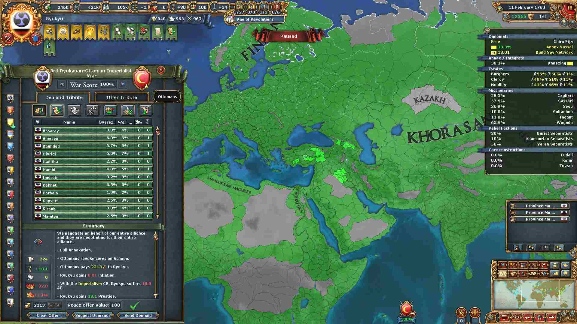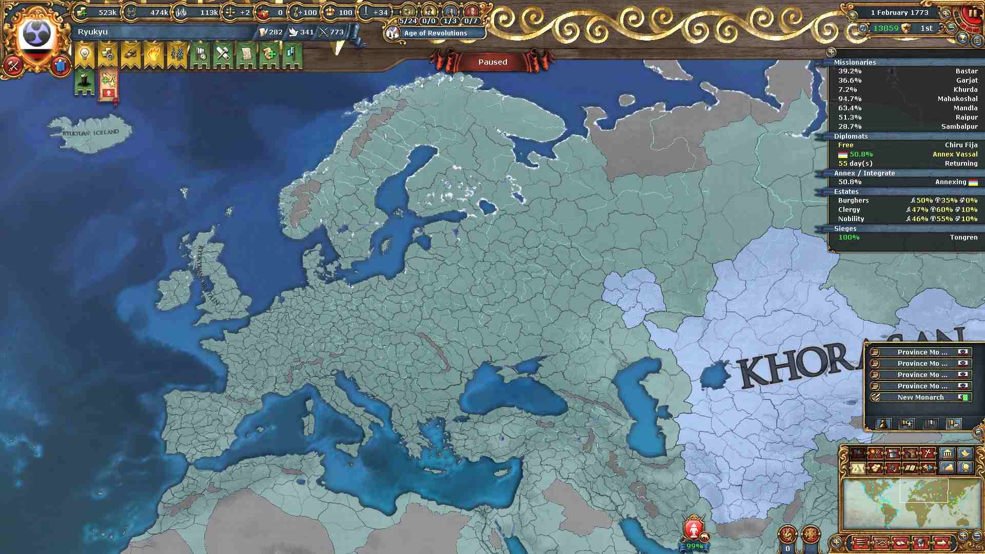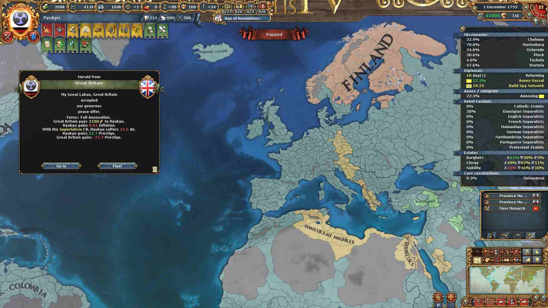 旧大陸の属国全ての外交併合が完了しました。