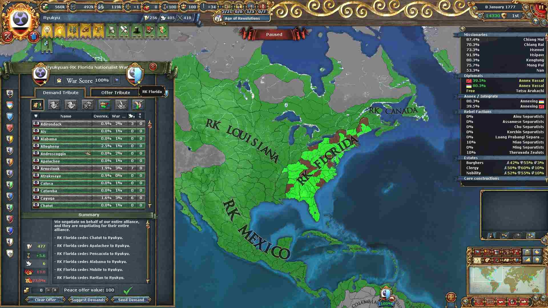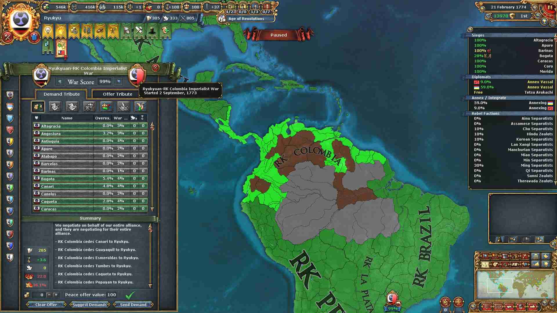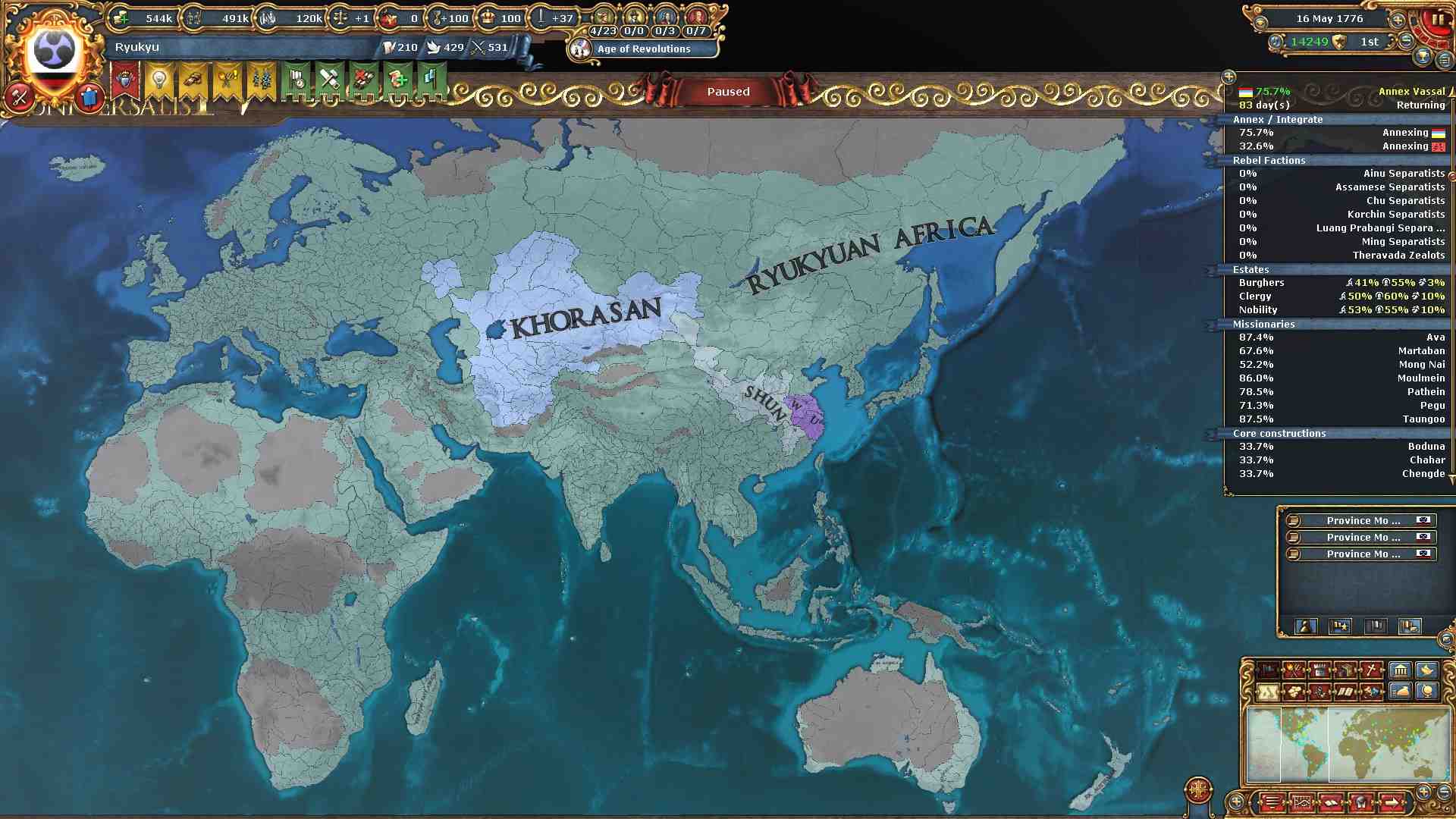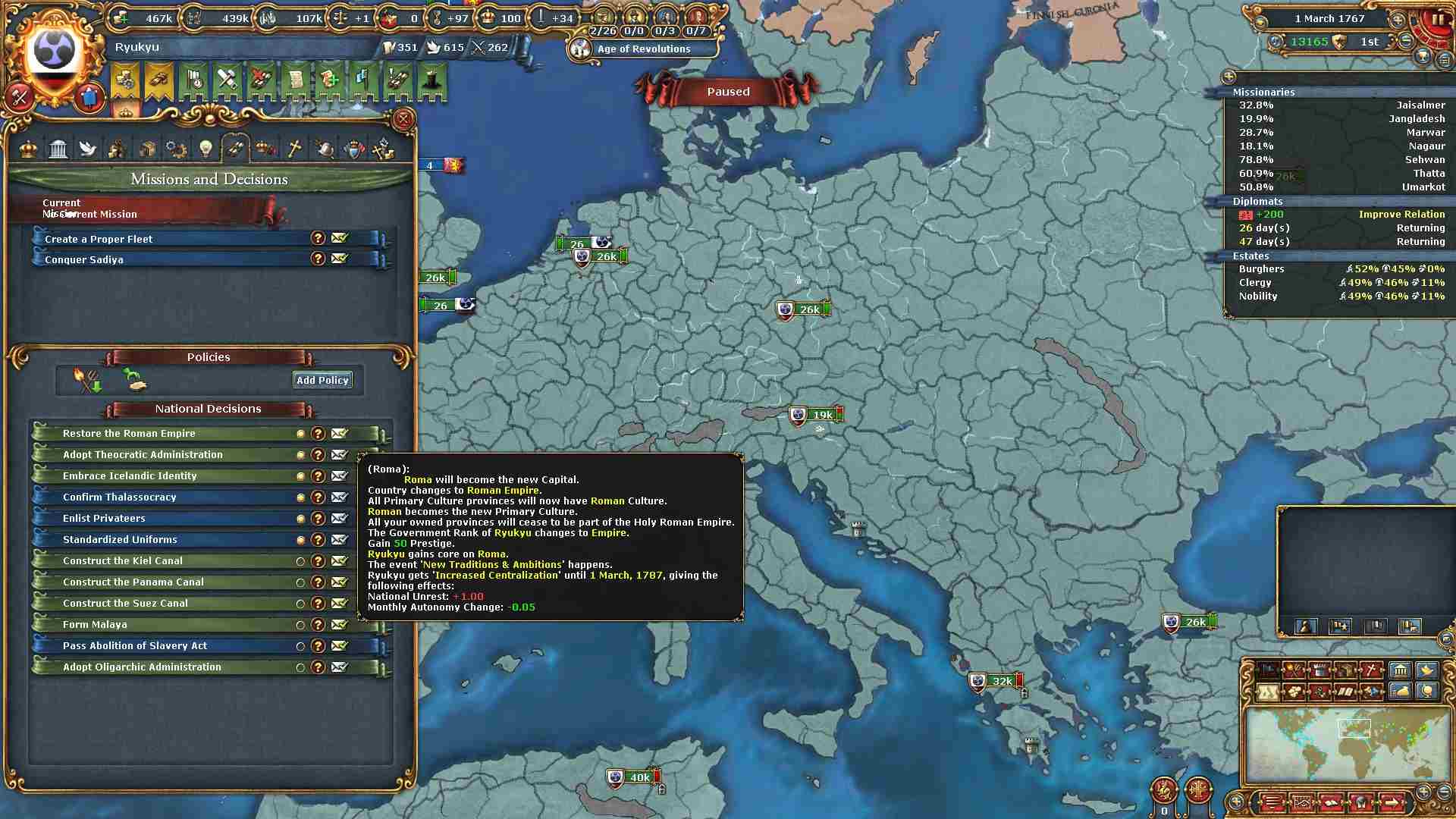 旧大陸の属国全ての外交併合が完了しました。
