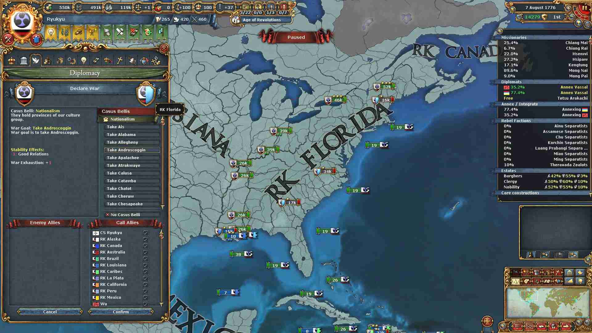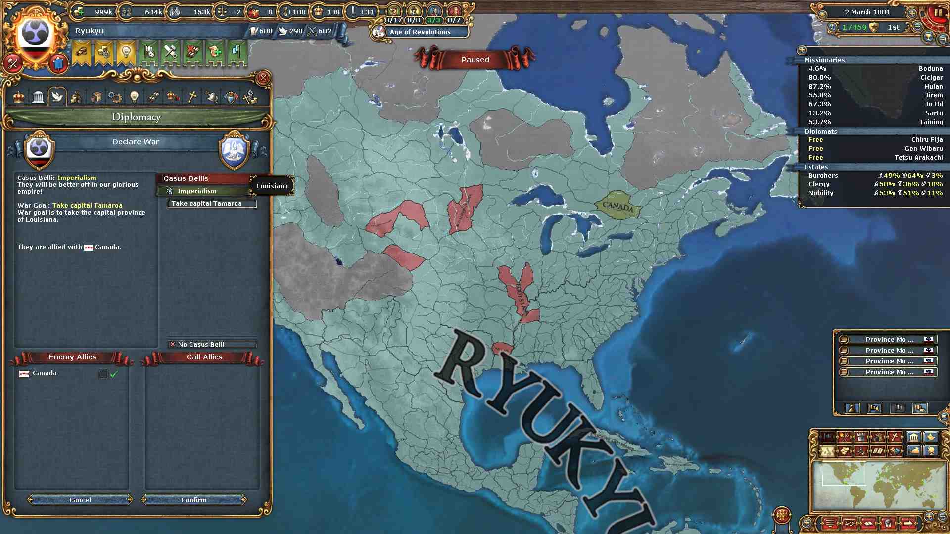 最後に残ったLuisiana、Canadaに宣戦布告。