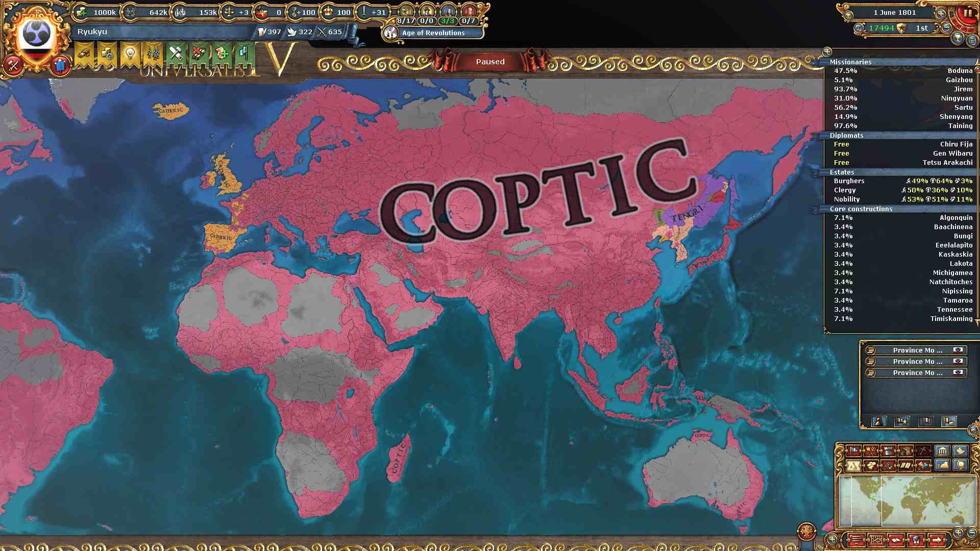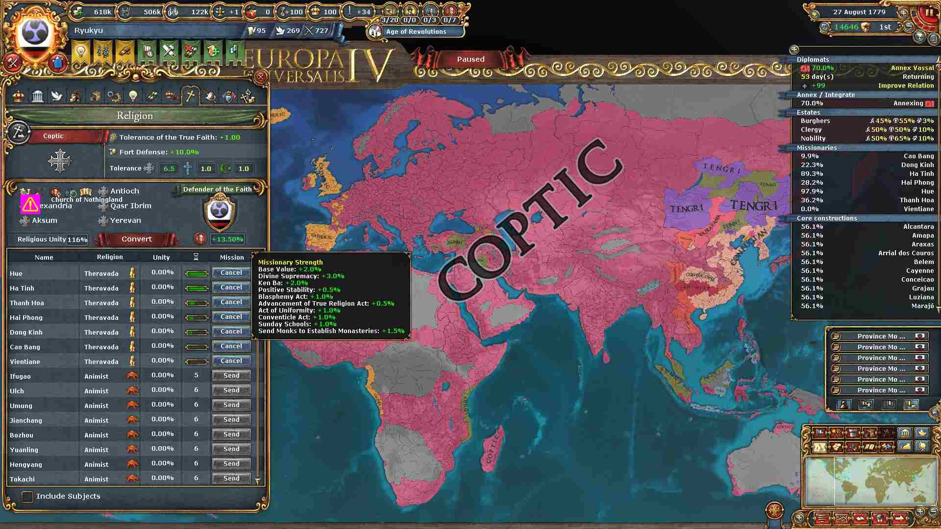 宗教アイデアを進めたので改宗強度もUPしています。