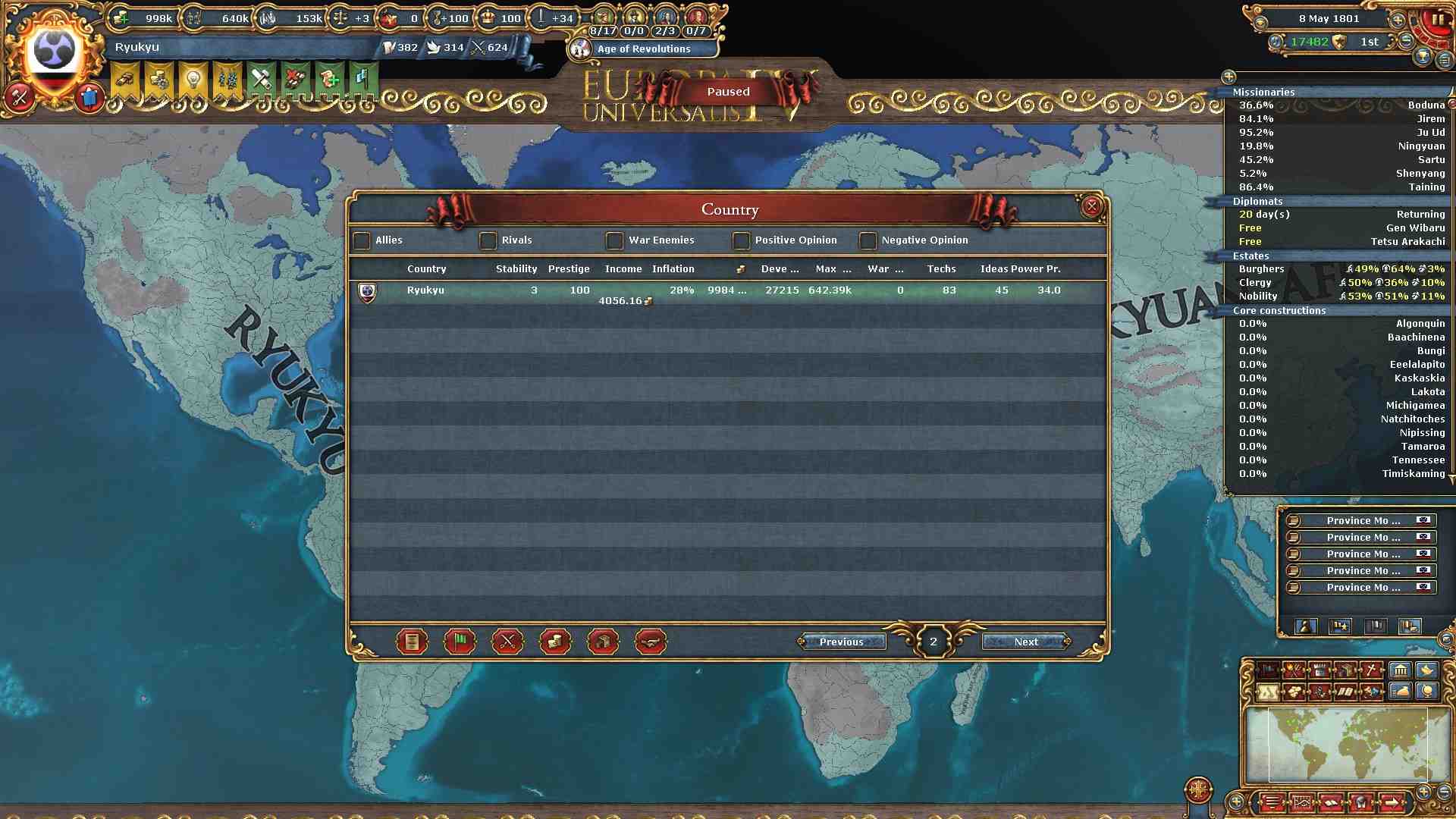 (アイデア・新大陸遷都・コア化・外交併合など)を考慮した結果