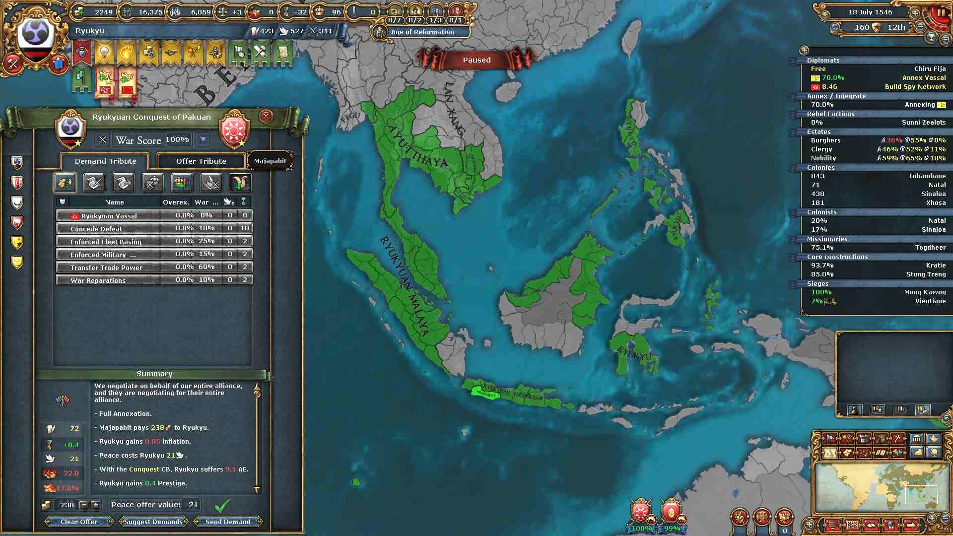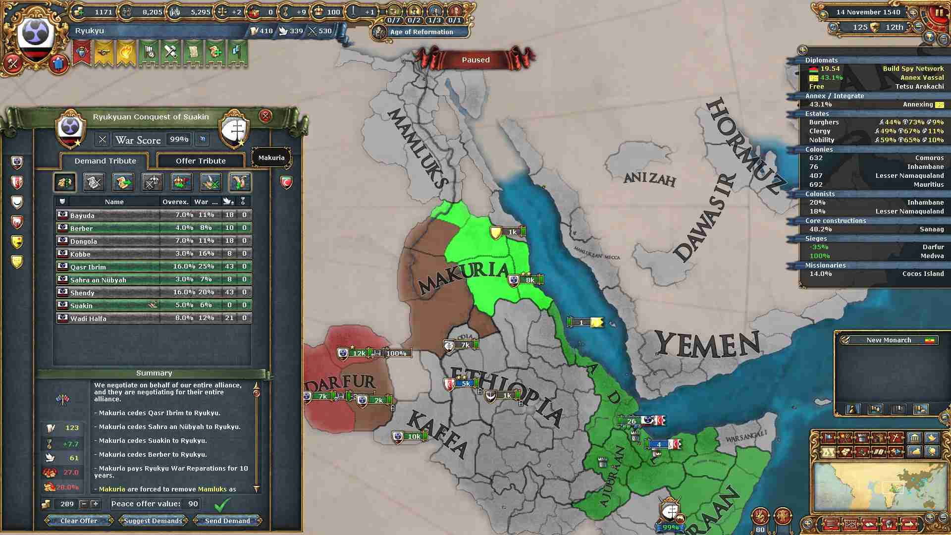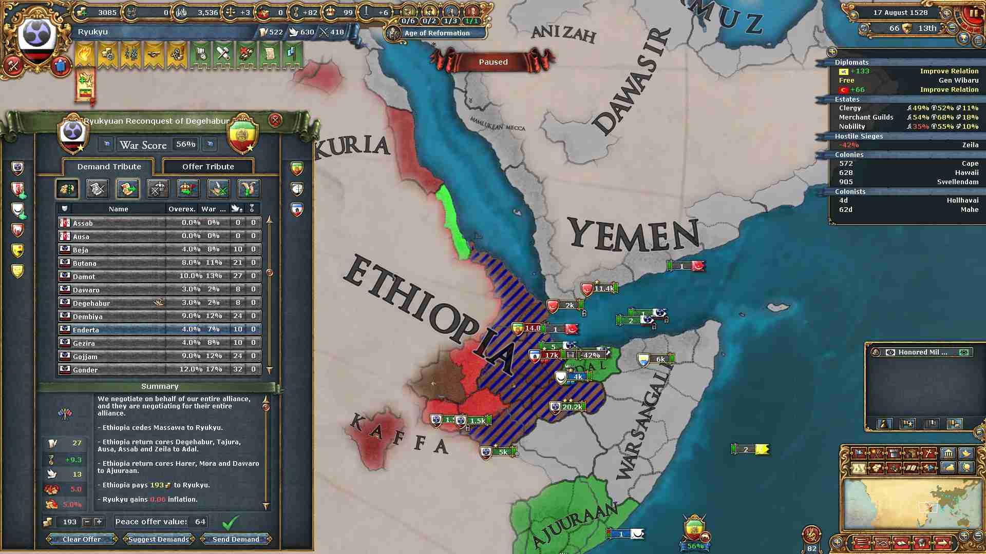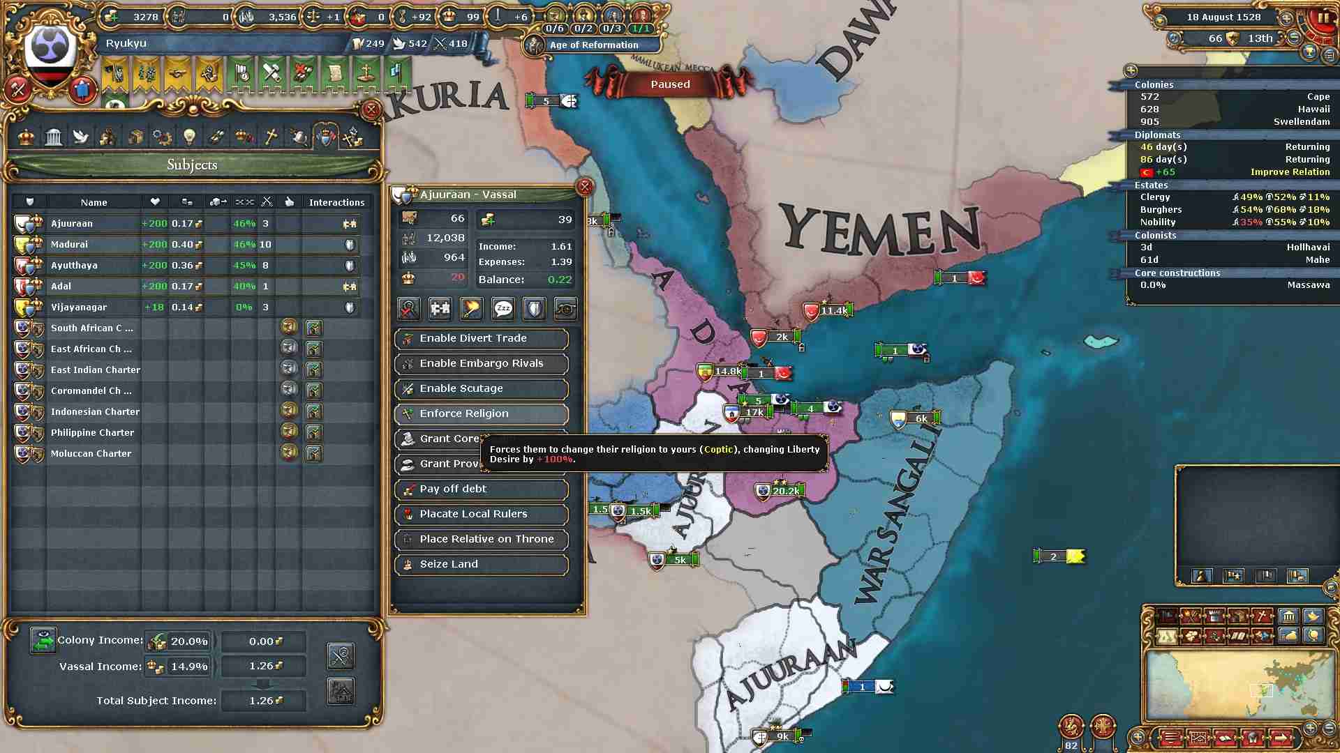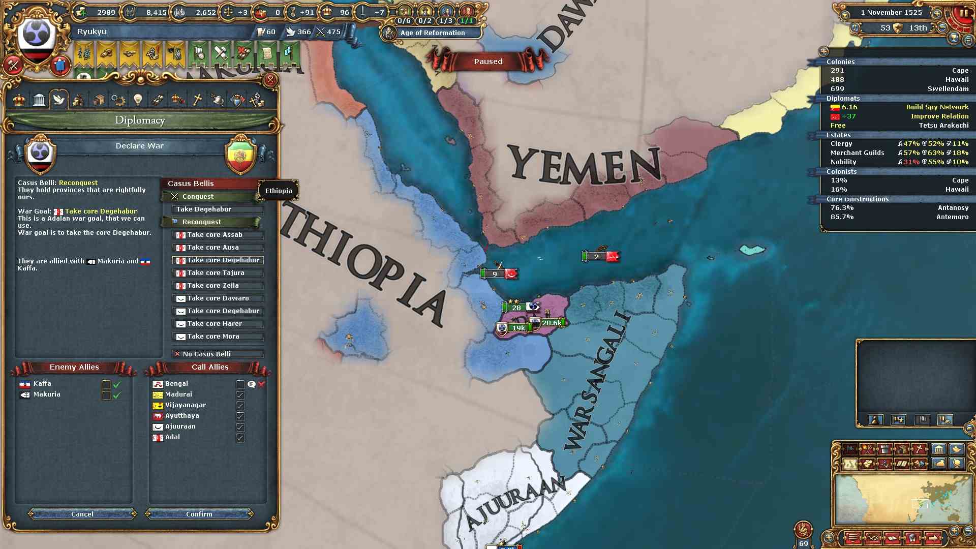 作成した属国Adal、Ajuuraanの領土返還と