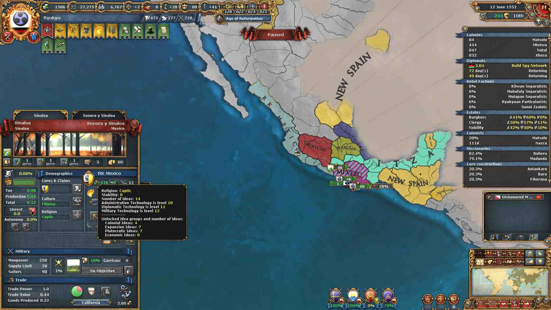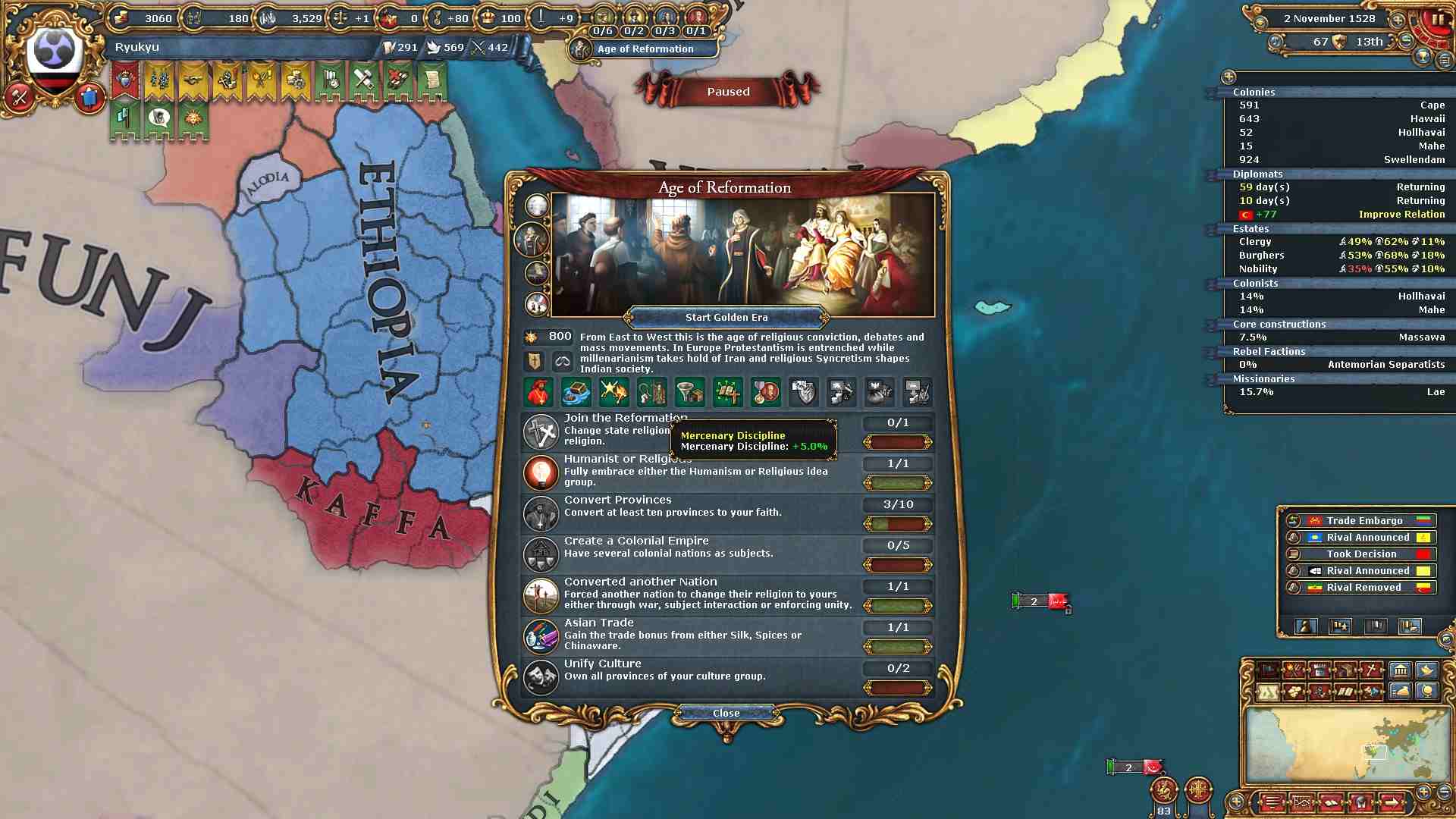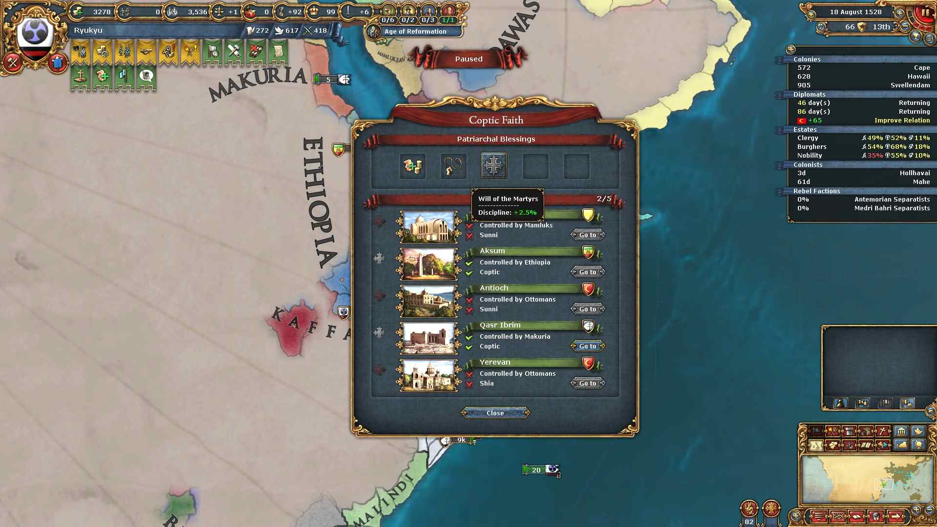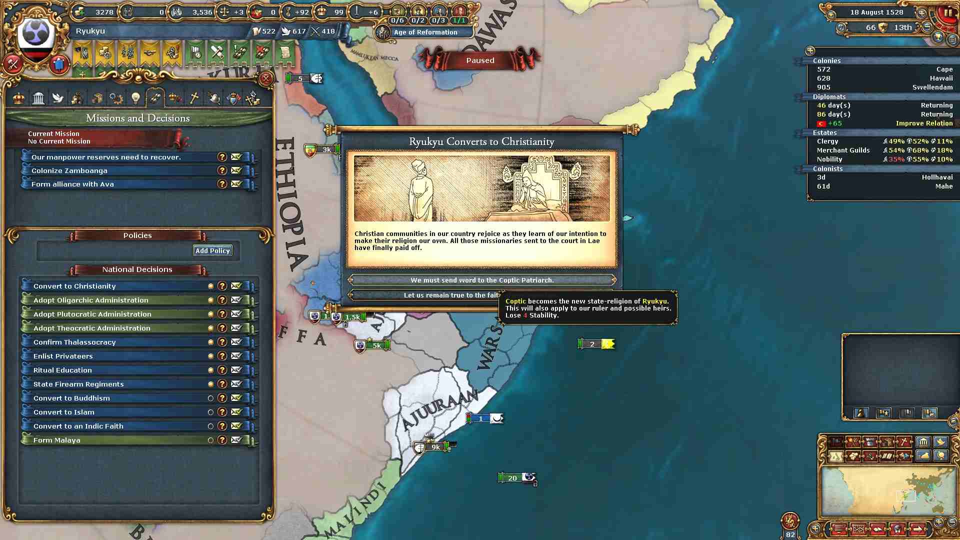 コプト教の州を得たので安定度-4と引き換えに