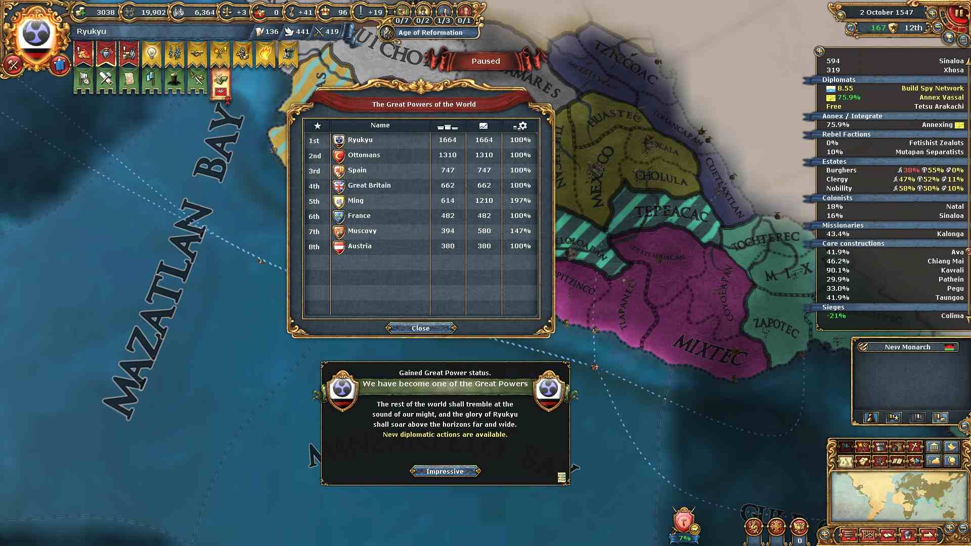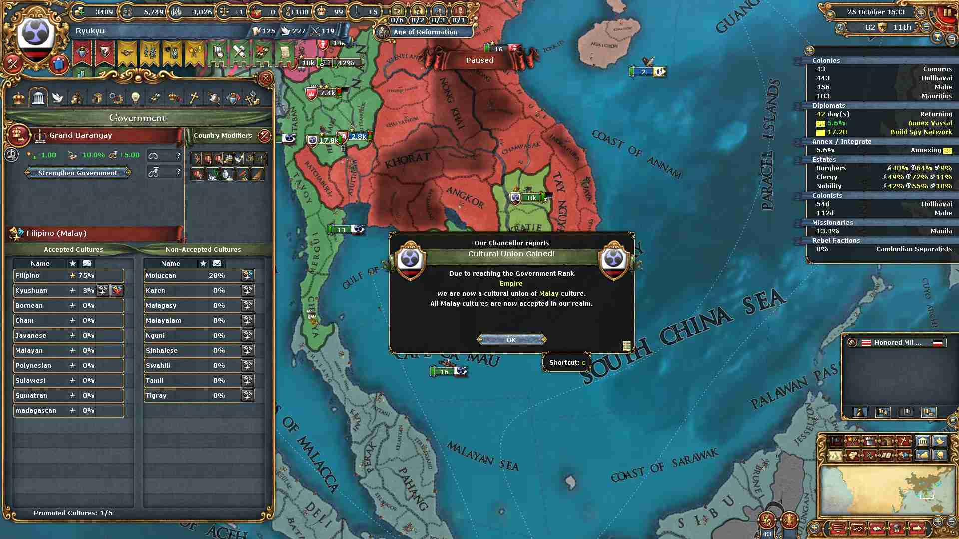 琉球の総開発度が1000に到達しました。