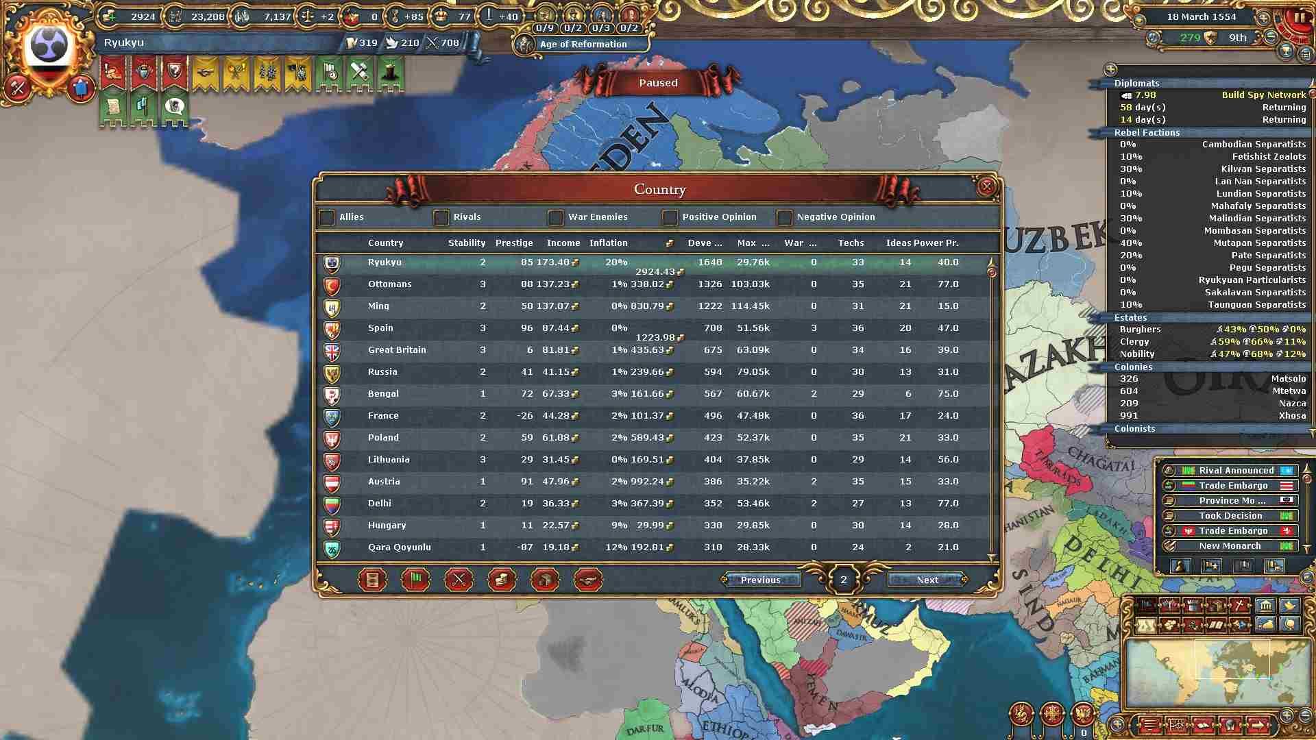 その結果、国家ランクが帝国級になりました。