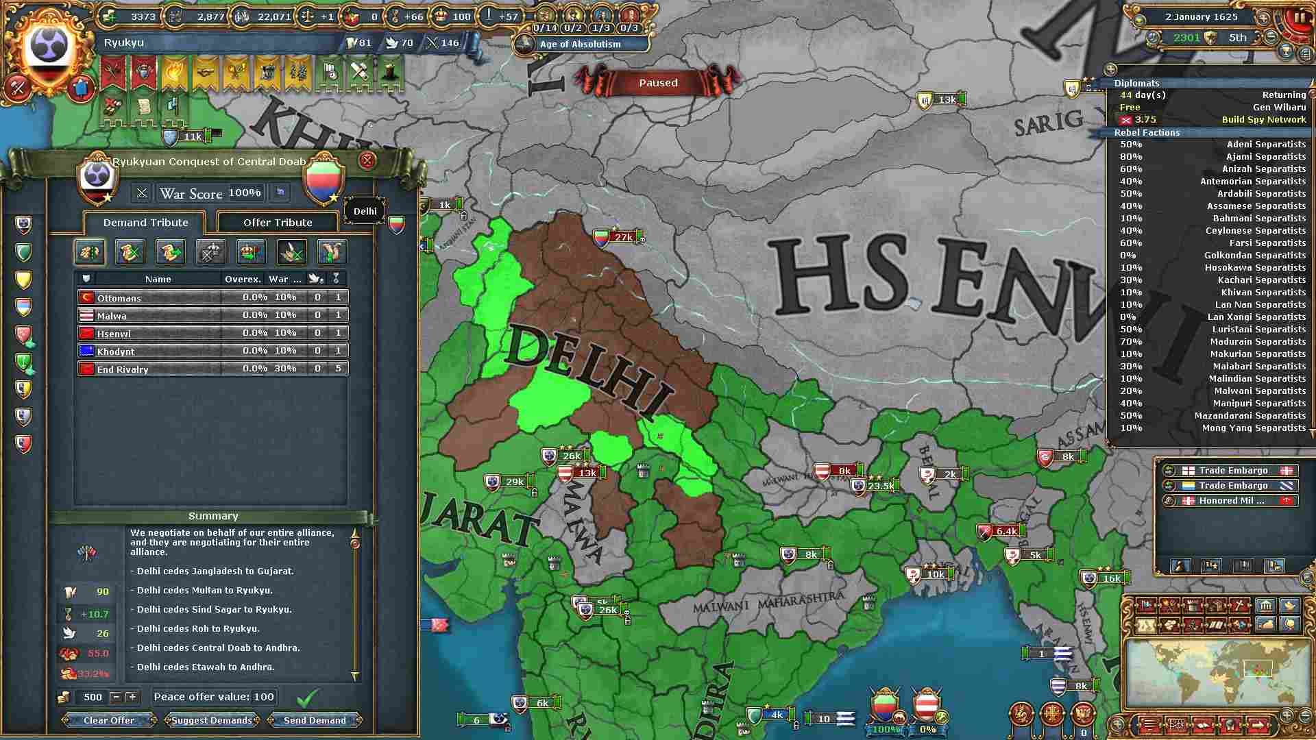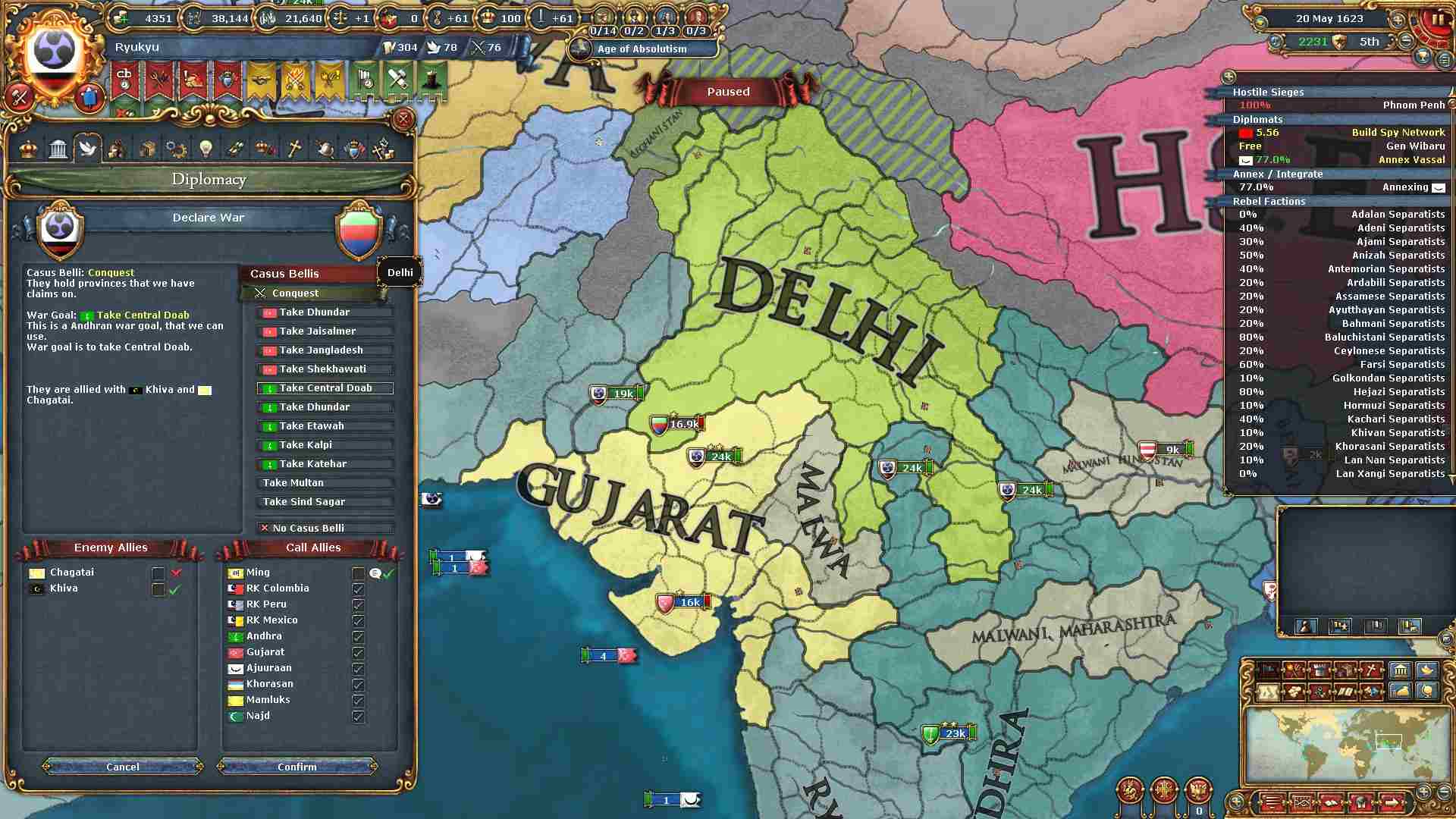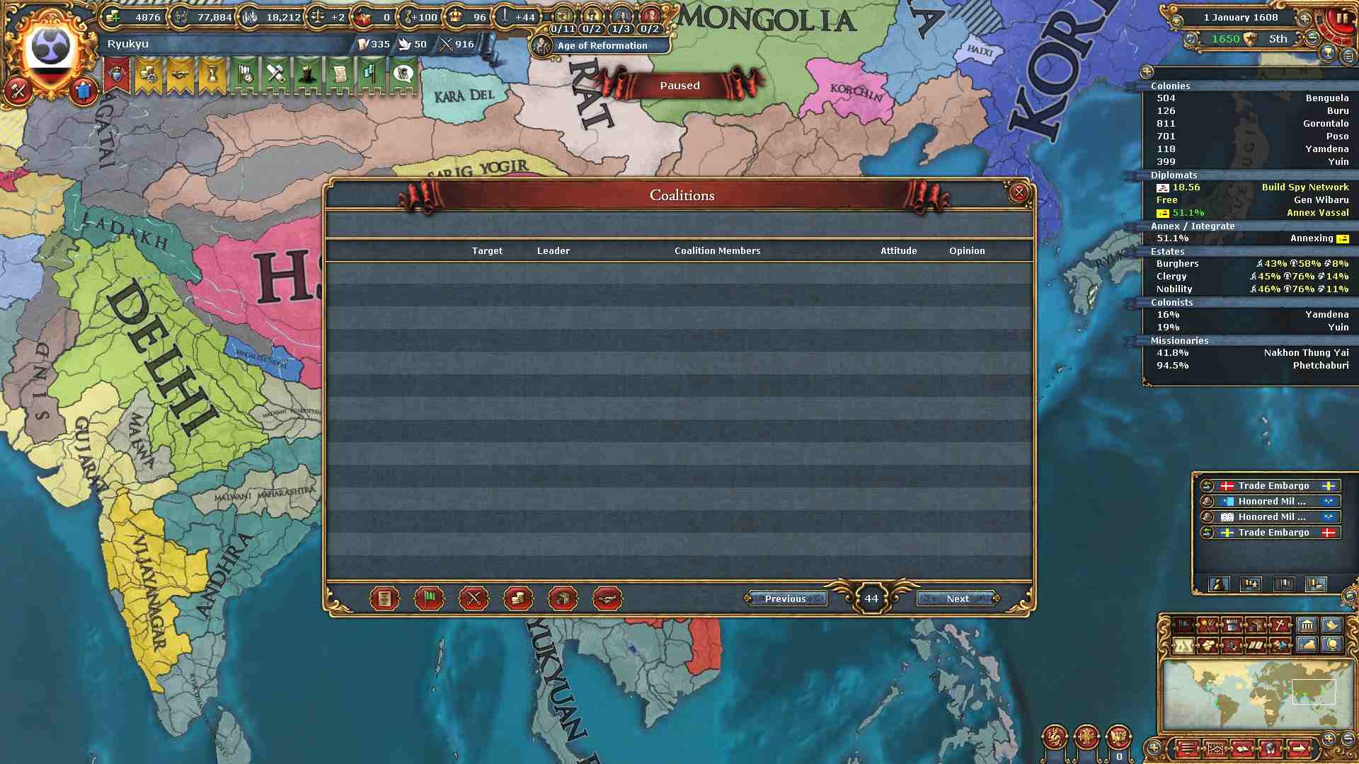 OttomansやDelhiも加入していた対琉球包囲網が解散しました。