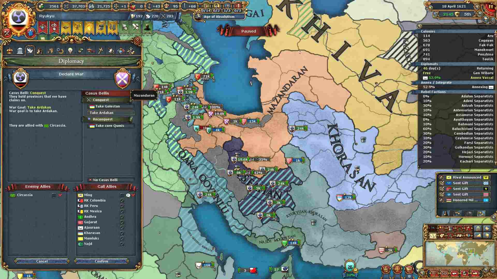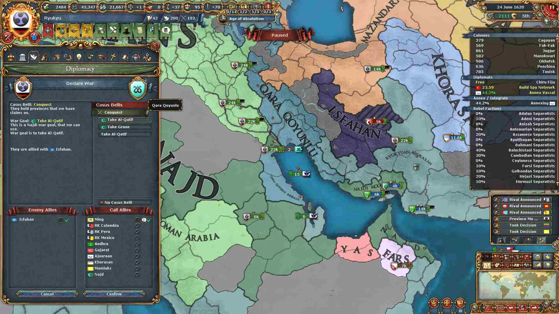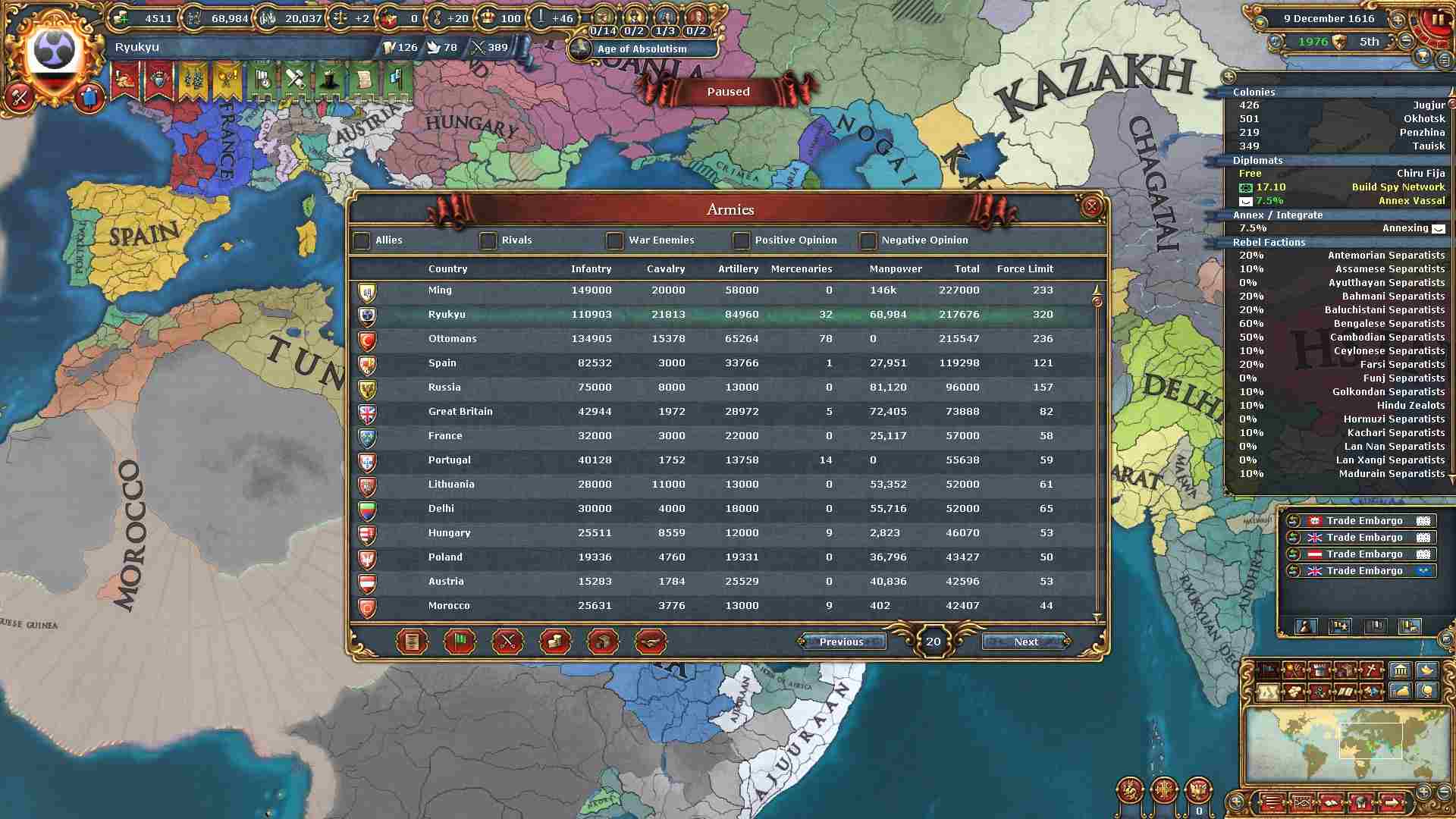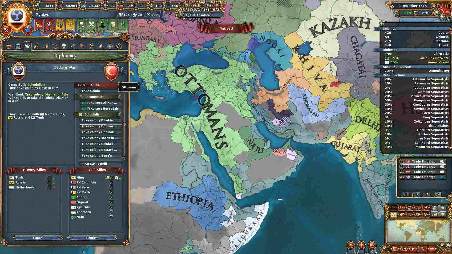OttomansやDelhiも加入していた対琉球包囲網が解散しました。