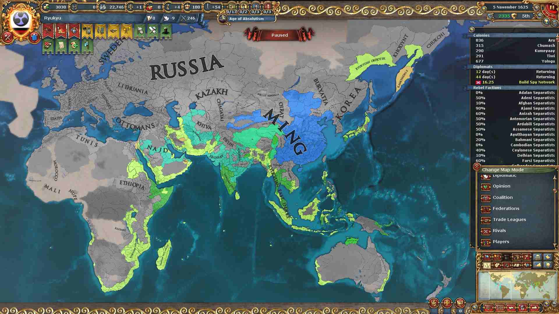 これ以降はOttomanとの停戦期間を目安に世界征服を行っていきます。