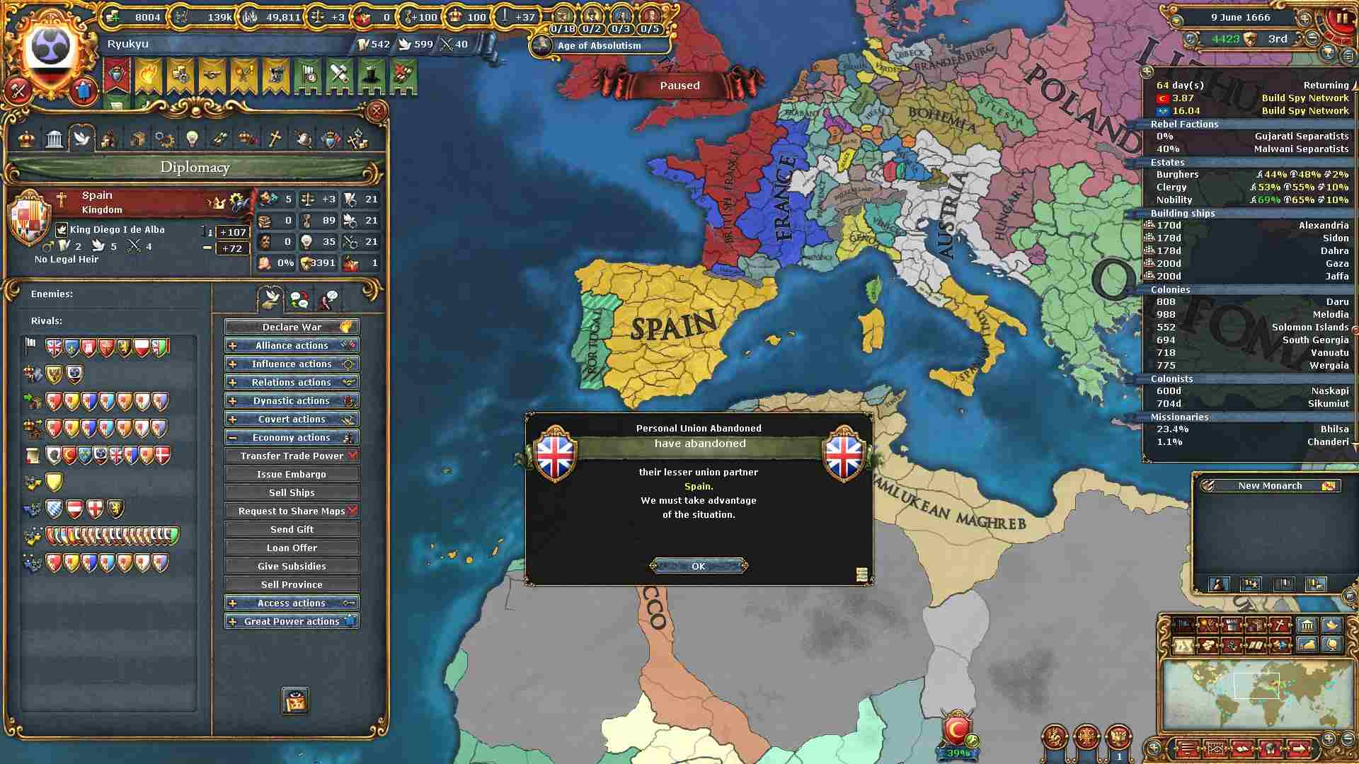 琉球とRussiaによるSpainの独立支援が功を奏しました。