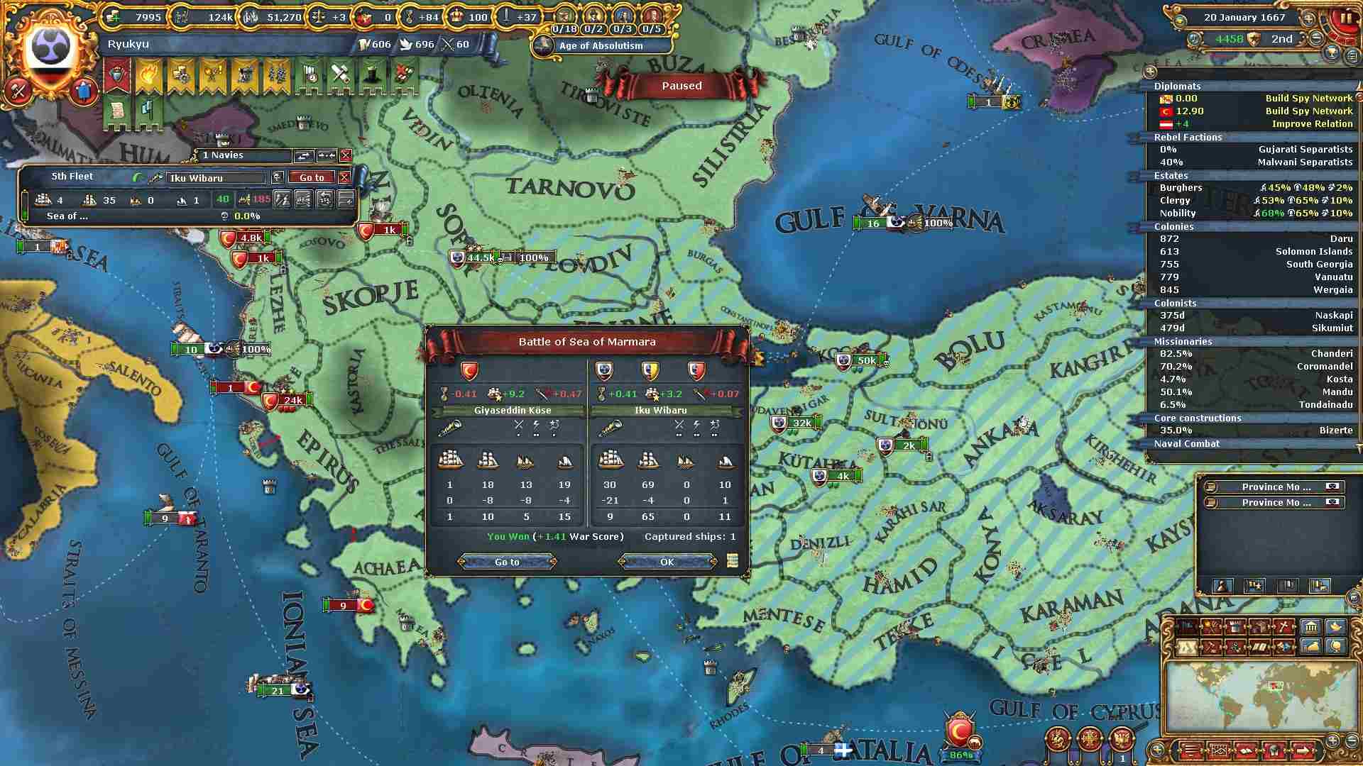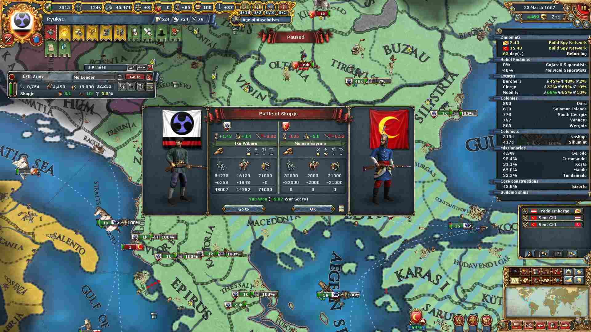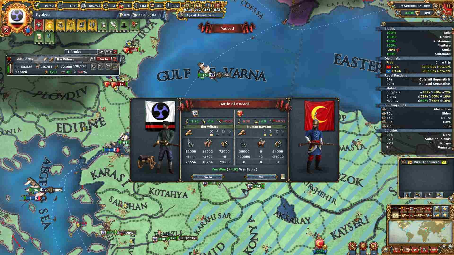 使用したCBと統治効率のおかげで多くの領土を奪えました。