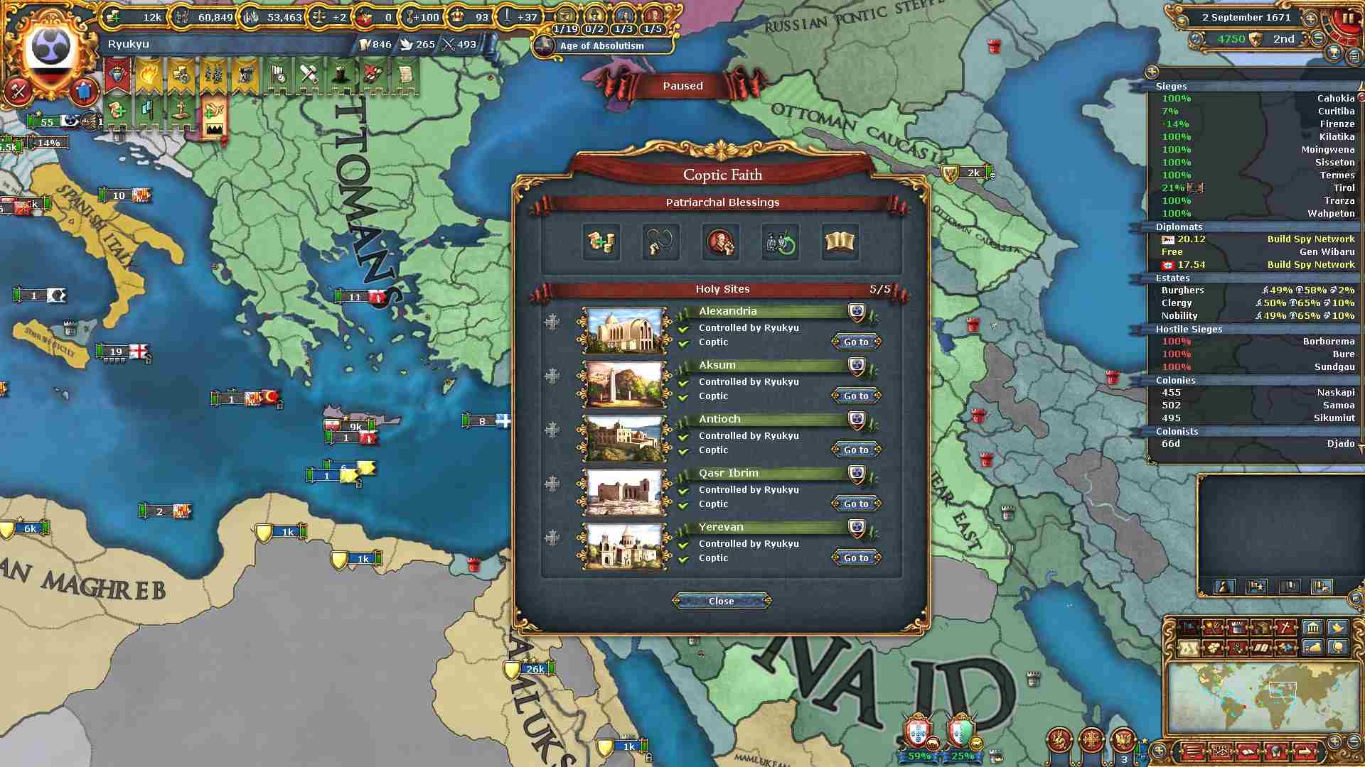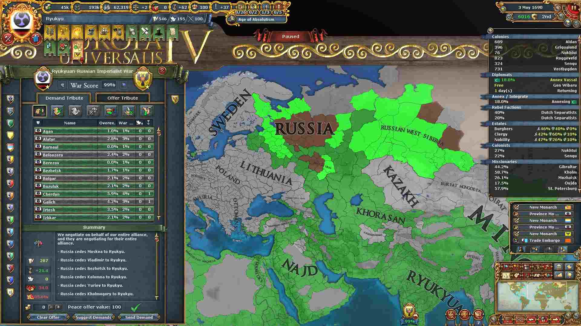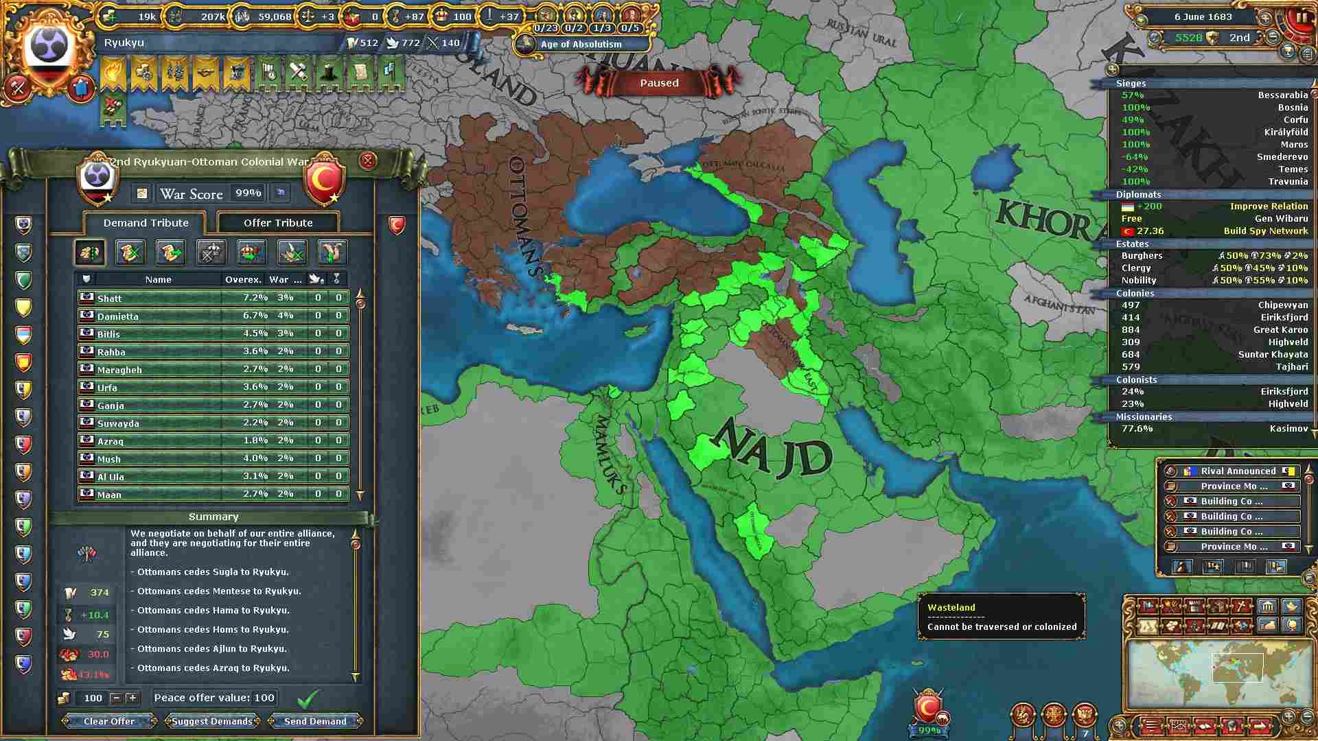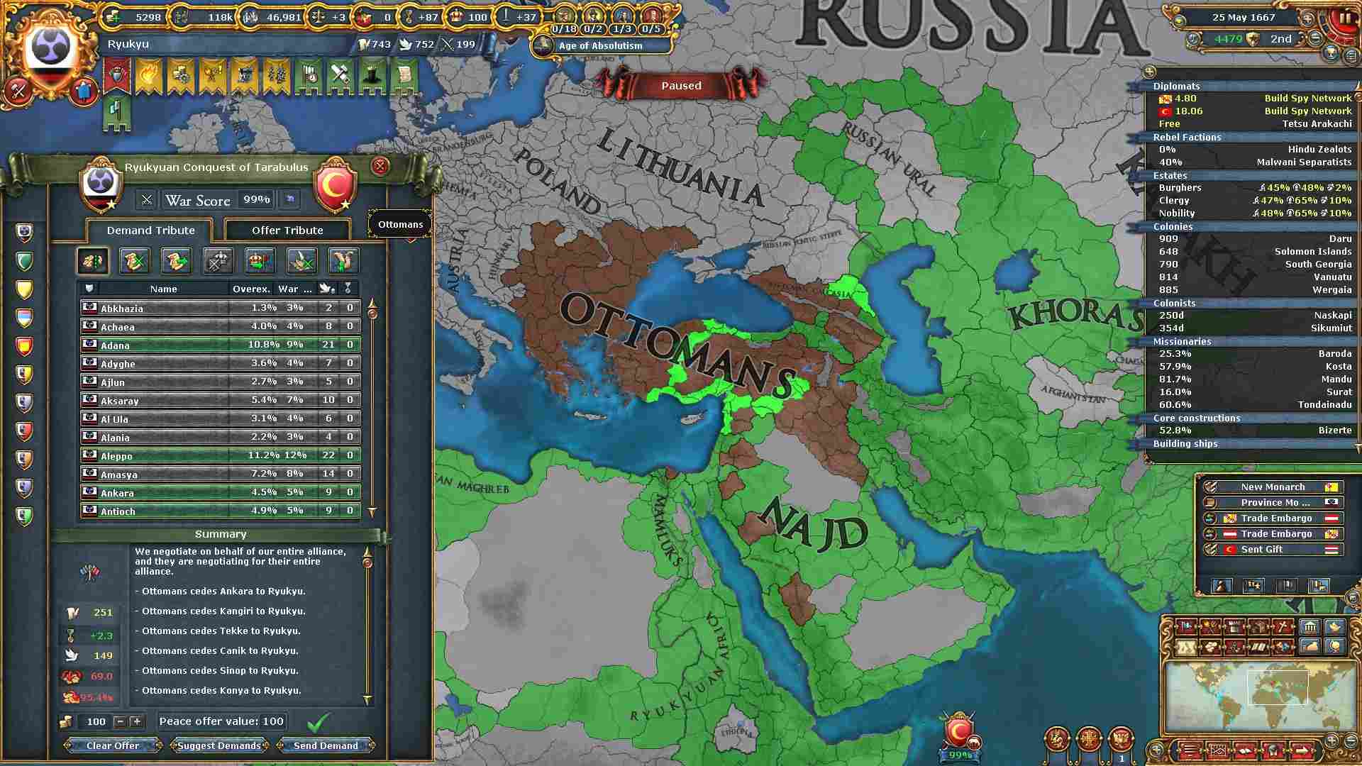 使用したCBと統治効率のおかげで多くの領土を奪えました。