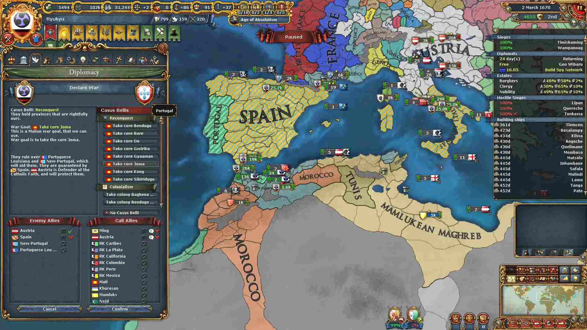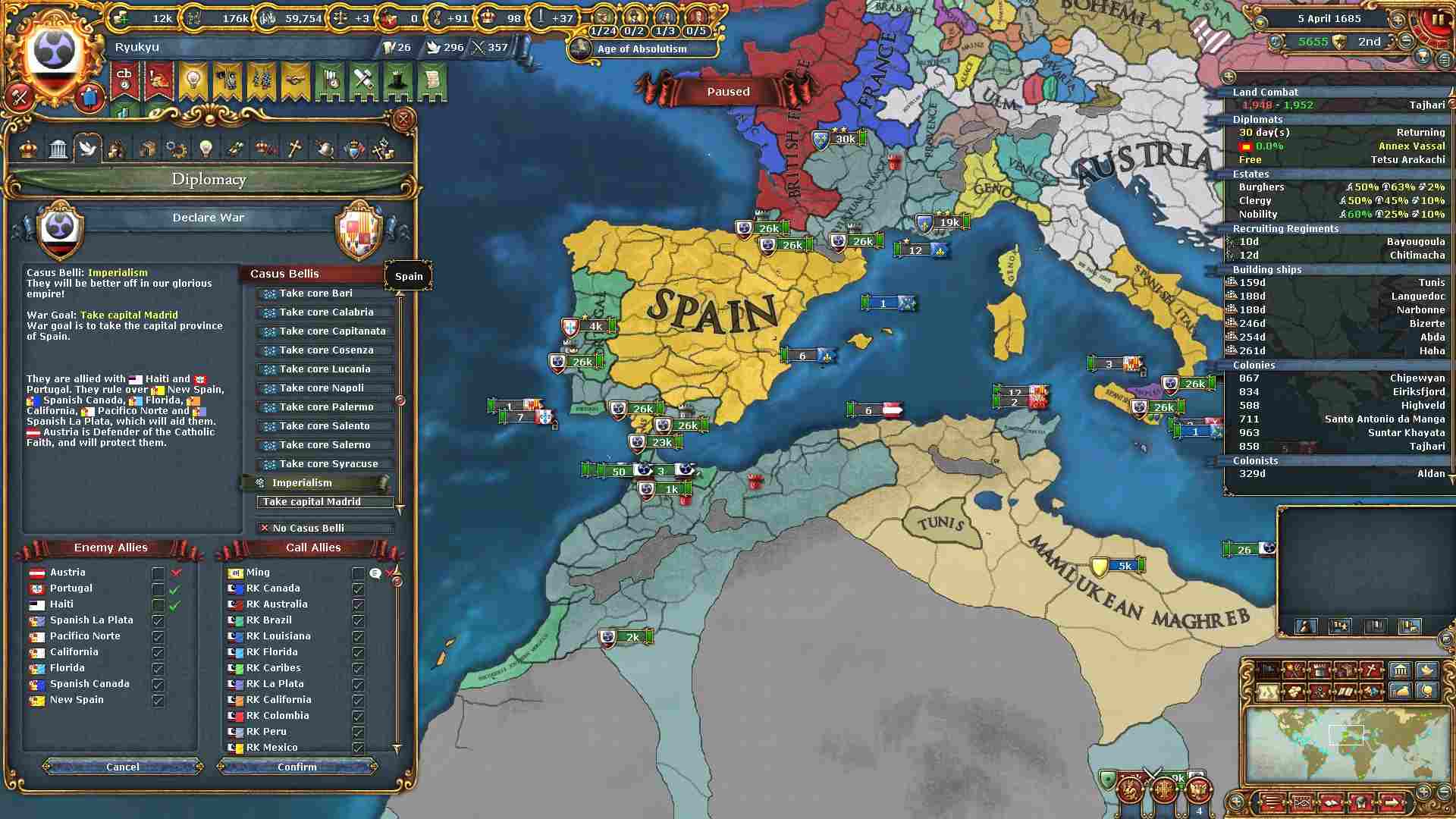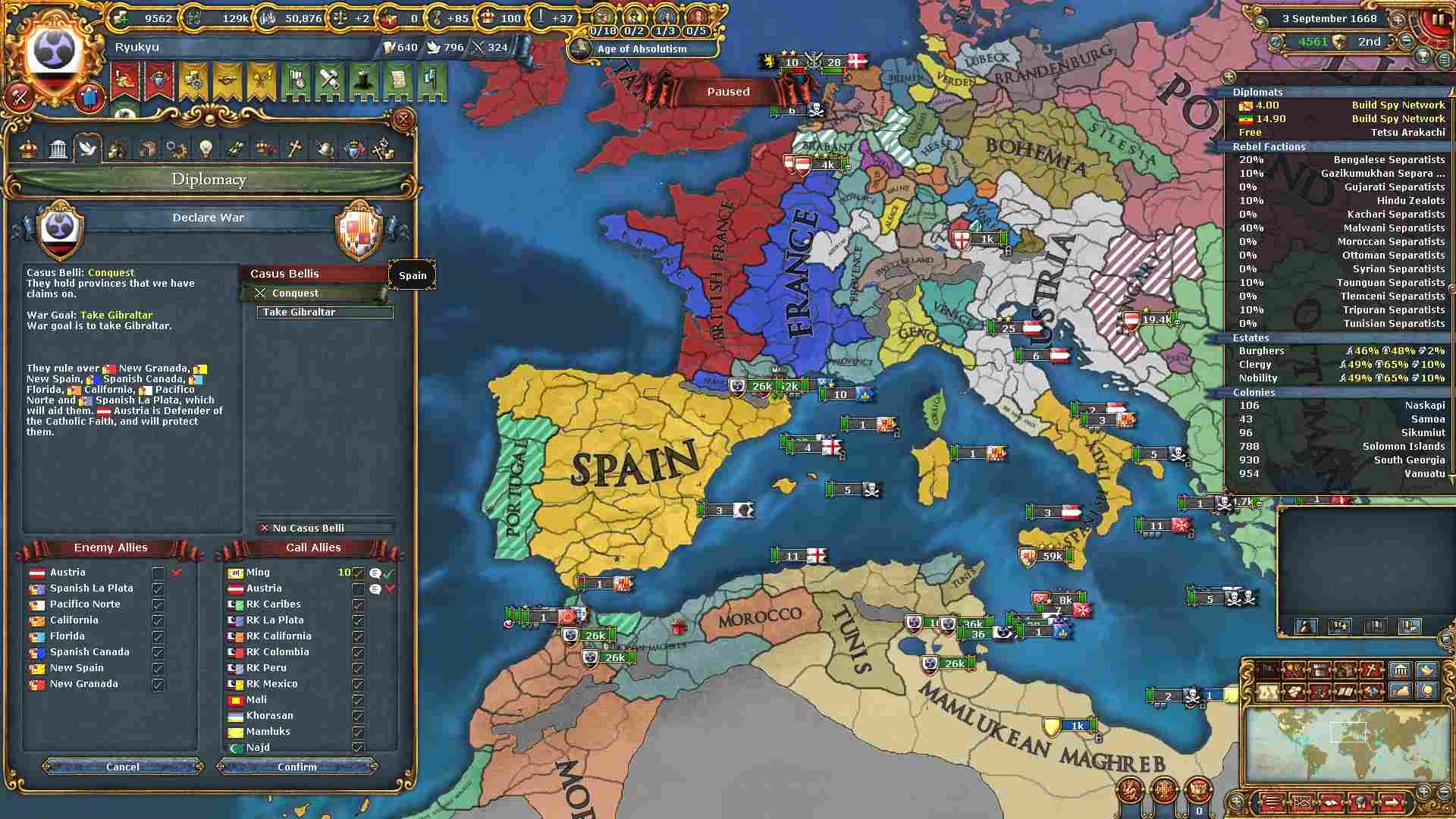 次回はSpain本土に戦地を限定できるので戦争が楽になります。