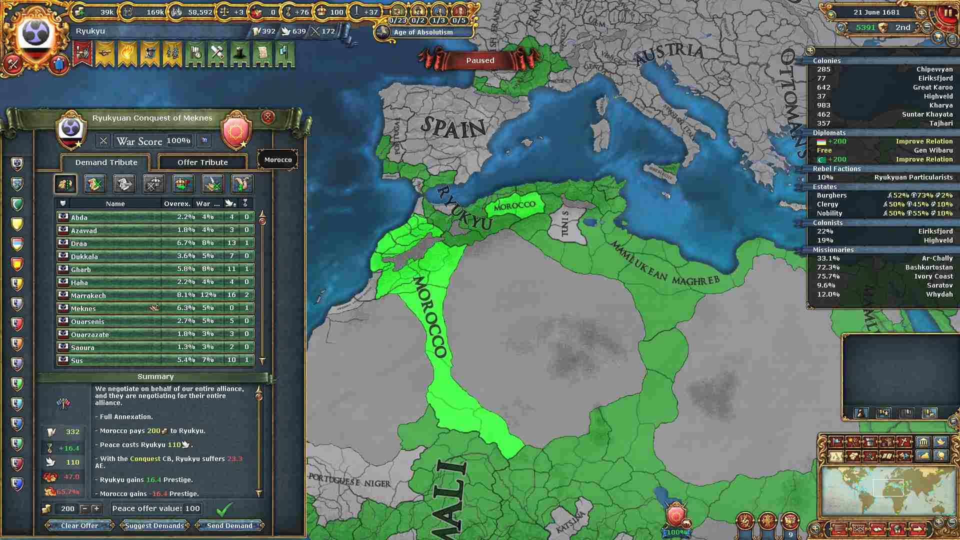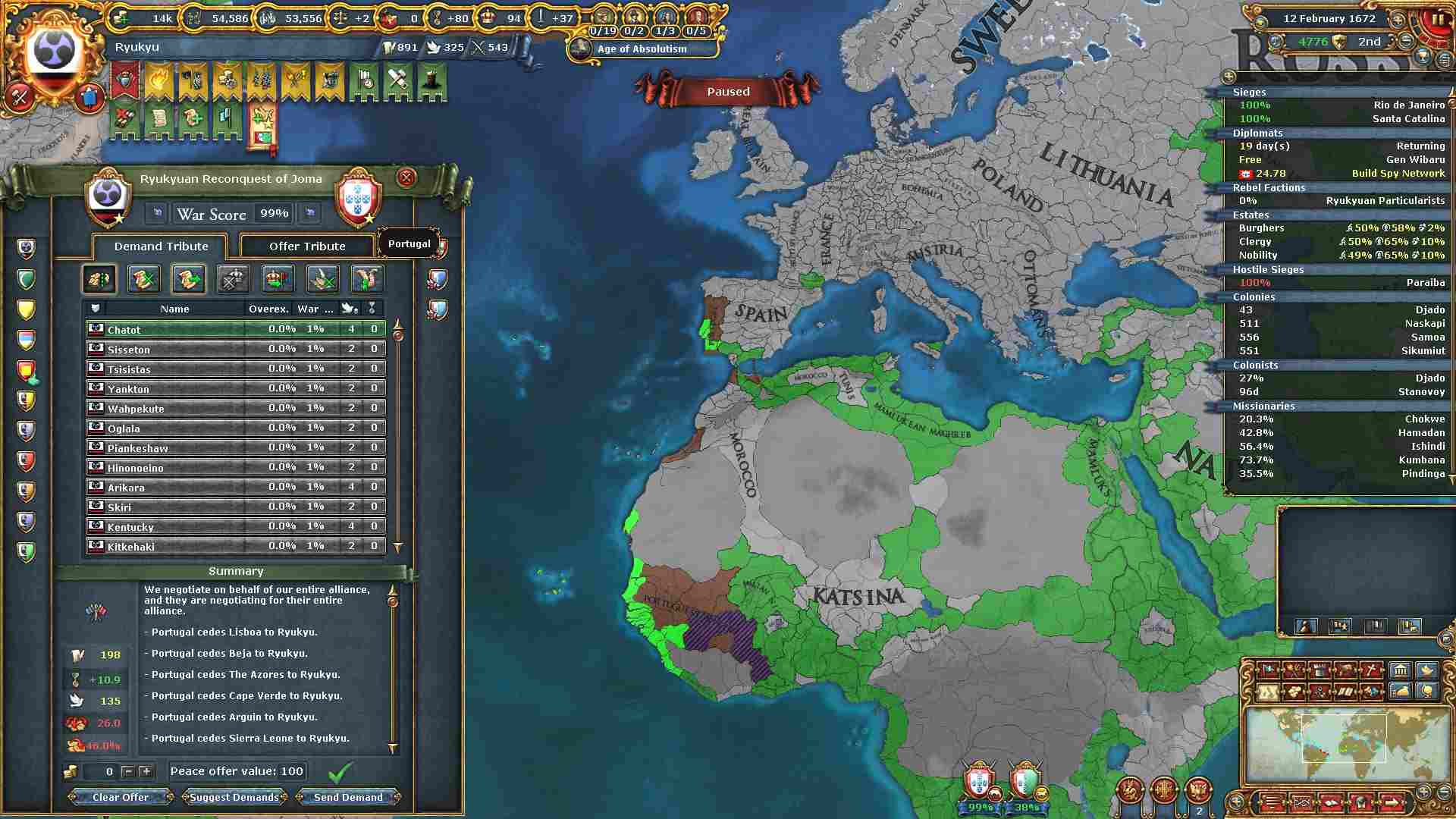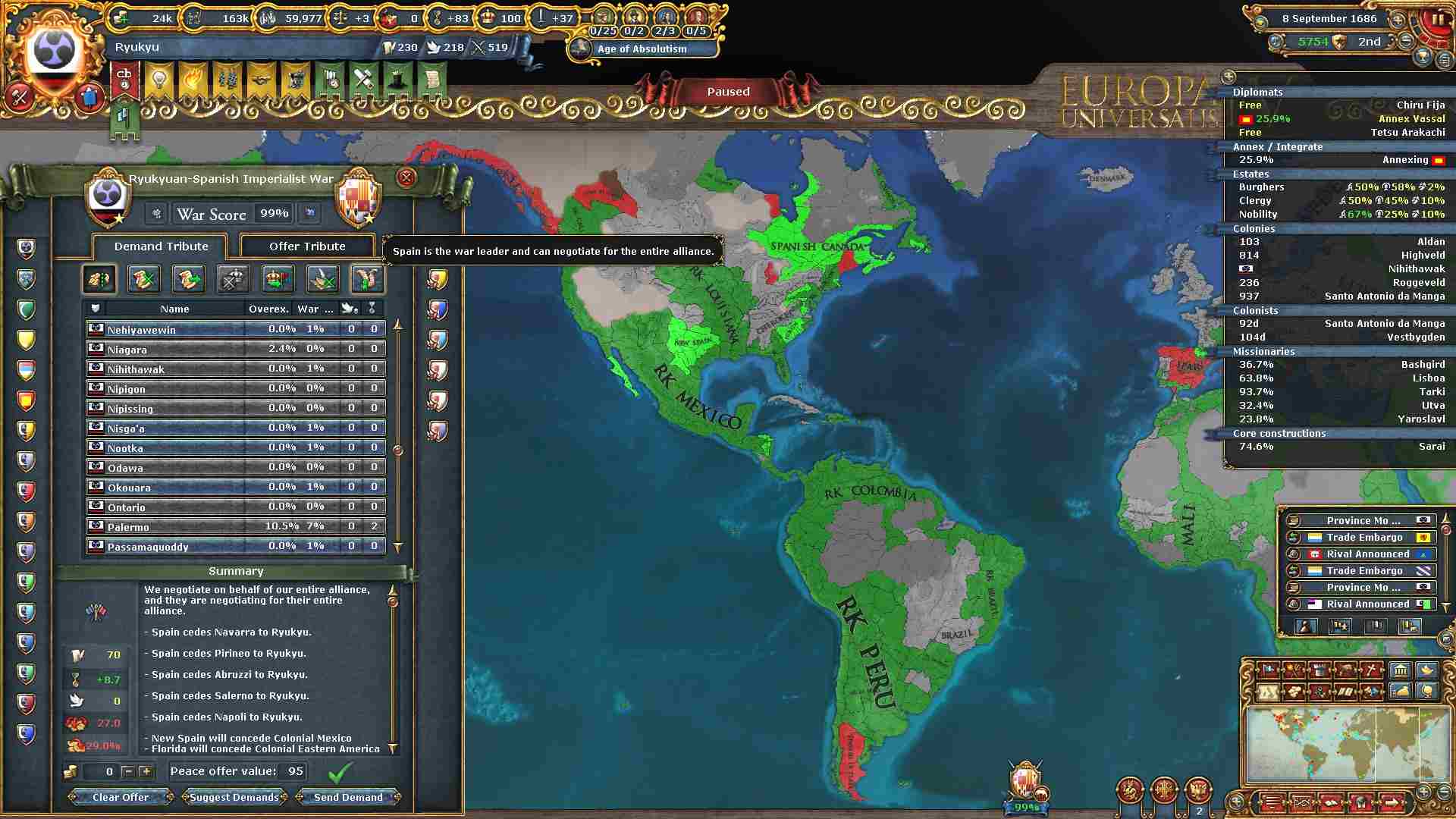 Spain戦の和平では旧大陸側は属国Naples作成の為に1州の割譲に留め、