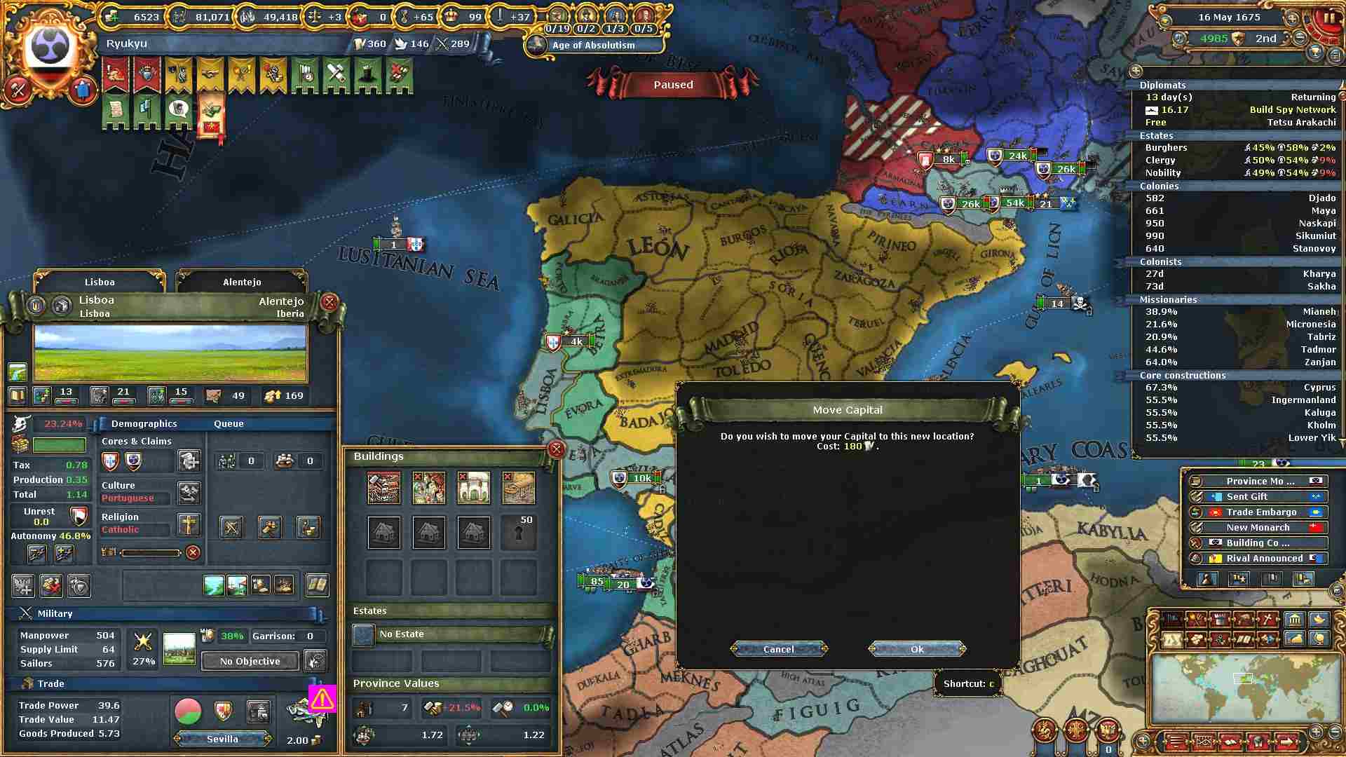 さらに首都がヨーロッパ大陸になったので、Triggered Modifiersの