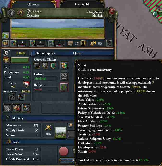 画像のような開発度合計10、スンニ、大聖堂建築済みのテリトリーコアの州を改宗すると