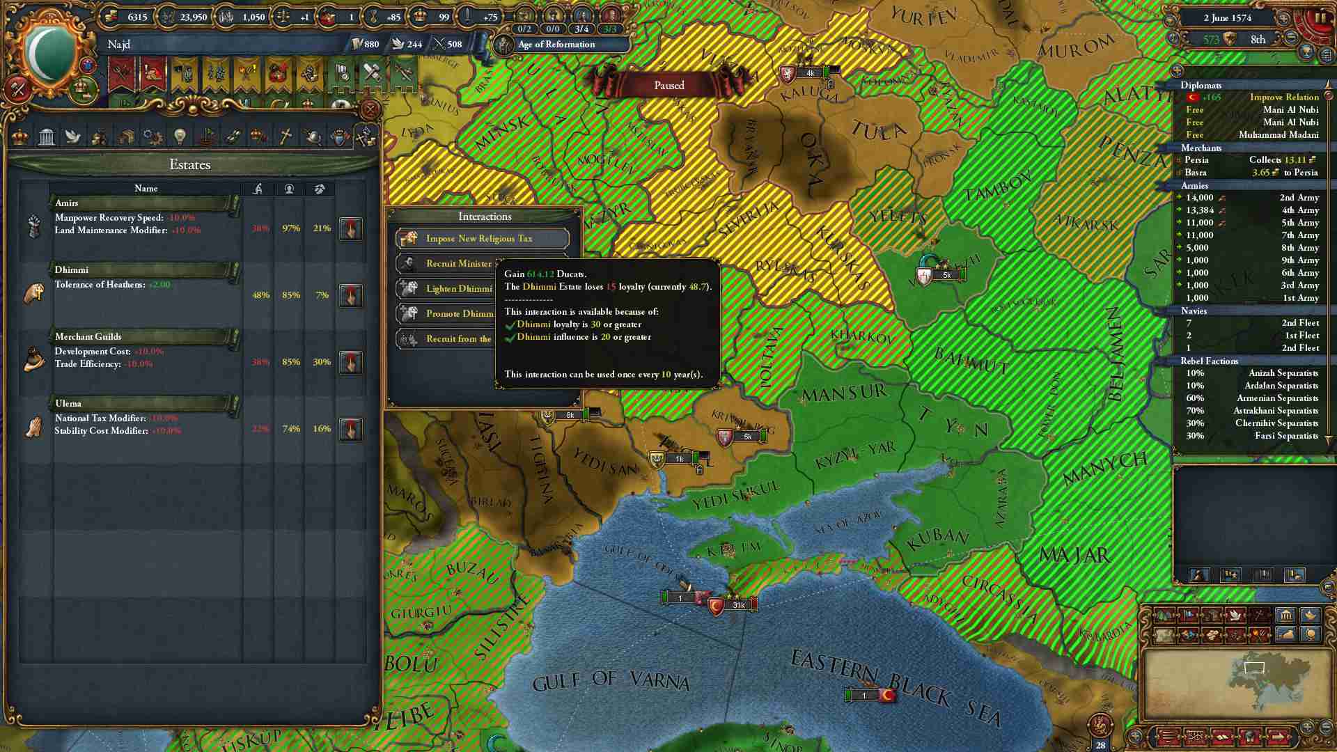 1574年6月 政府改革進捗度が貯まり第5段階が選択できるようになった