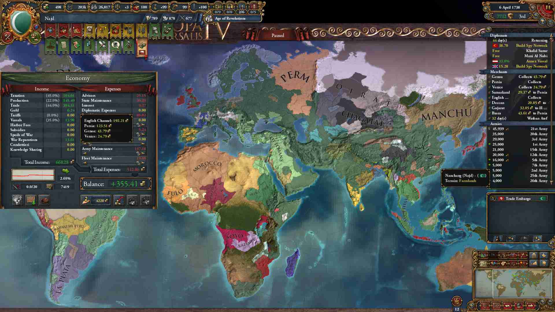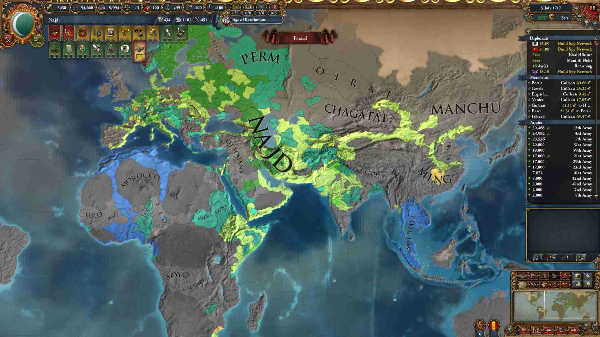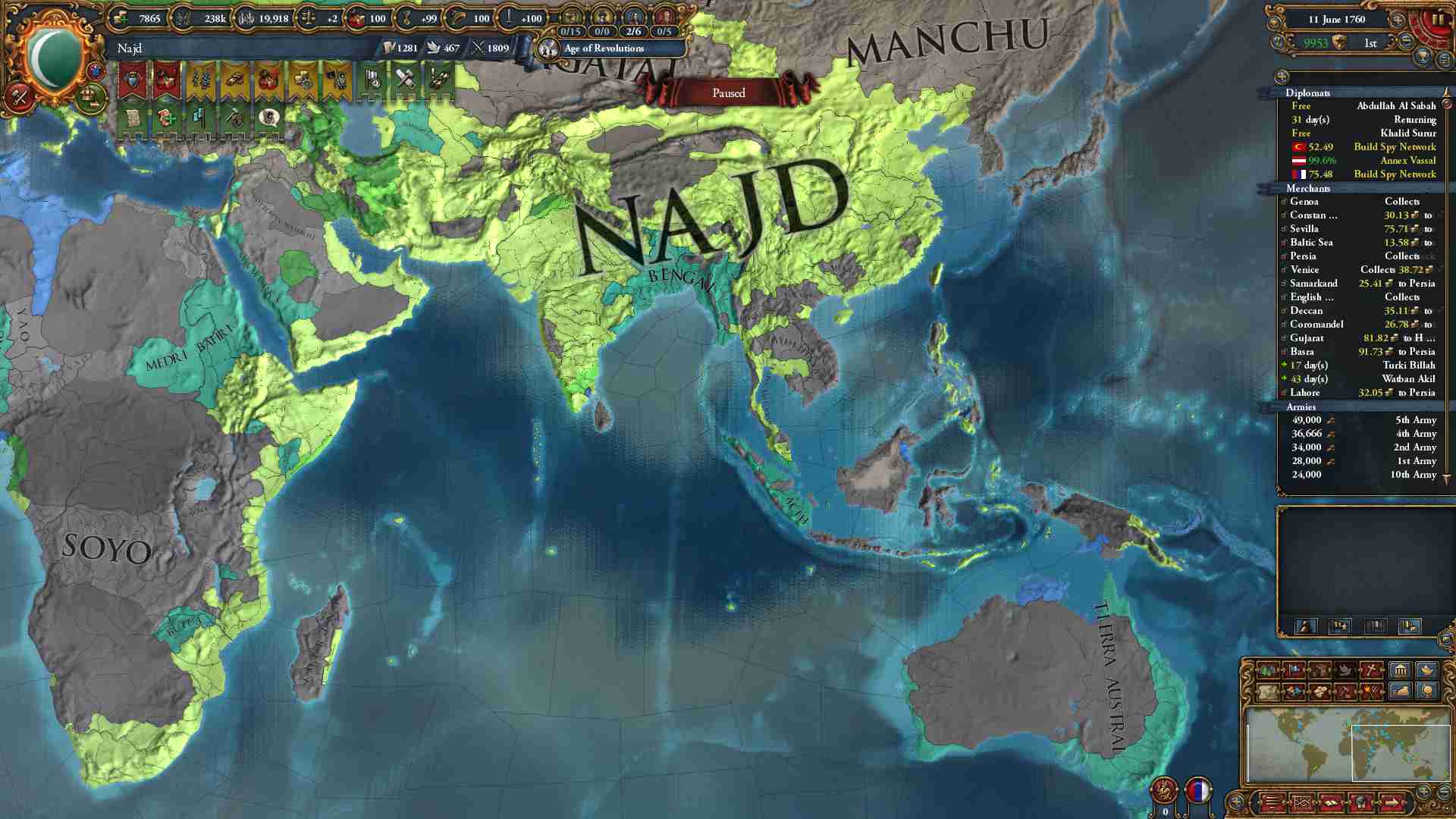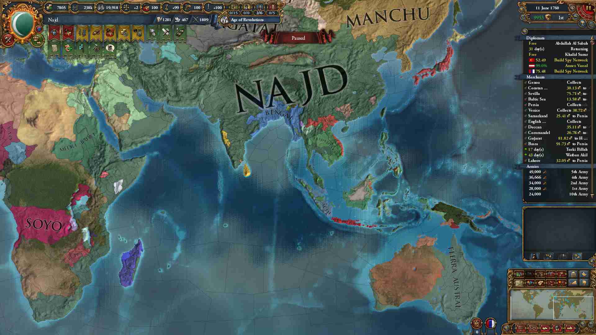 | 1735/?? | Majapahit | ←開戦後にMingから独立する国が | ←続出し、その都度宣戦&併合した結果 | ←OEが増えすぎたため1738/03白紙講和 |
