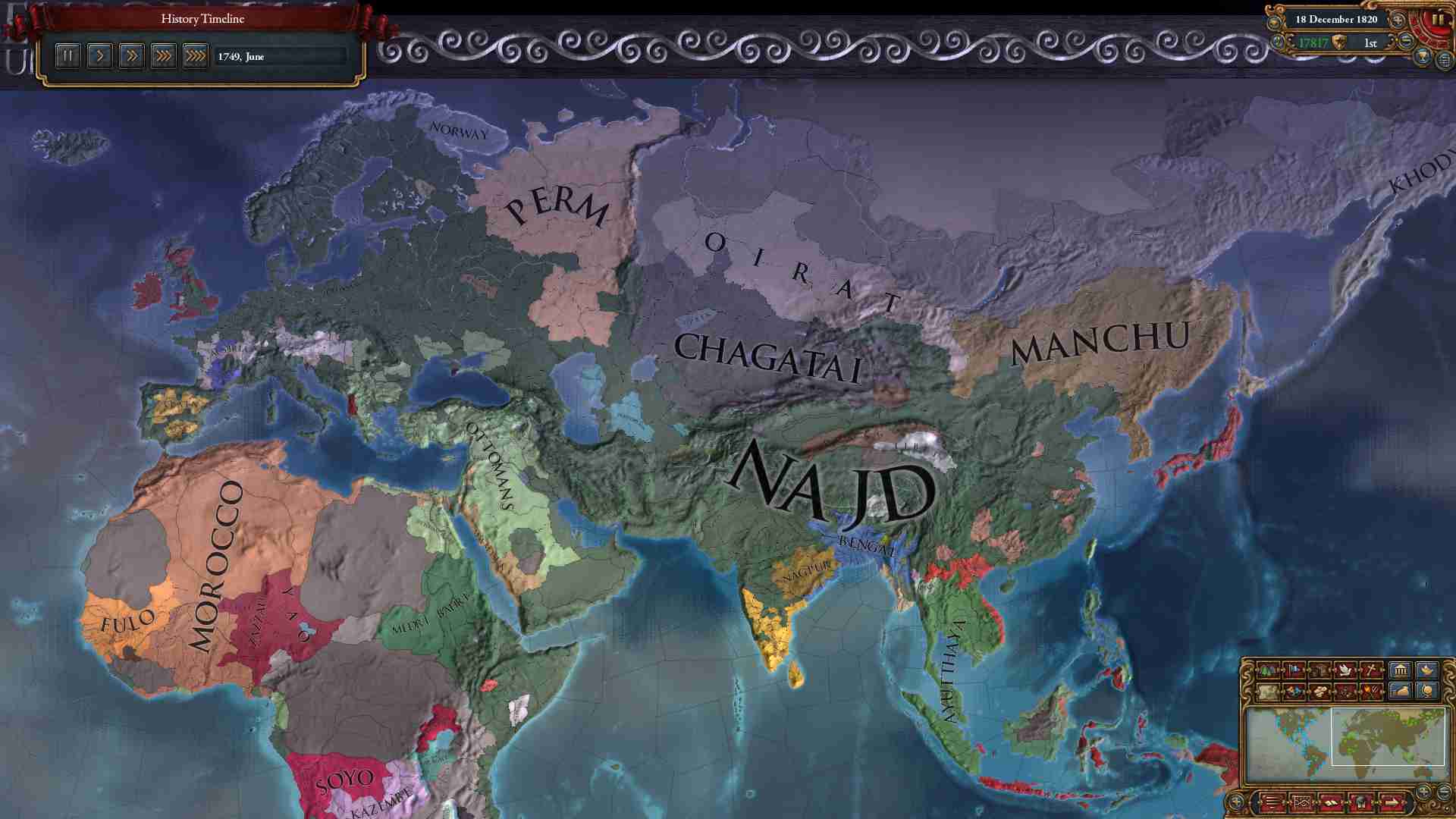 | 1735/?? | 中国から独立した国×6(+1)*9 | ←最大同時戦争数は5に収まった | 全て完全併合(合計21州) | 全て終戦したのが1738/02 |