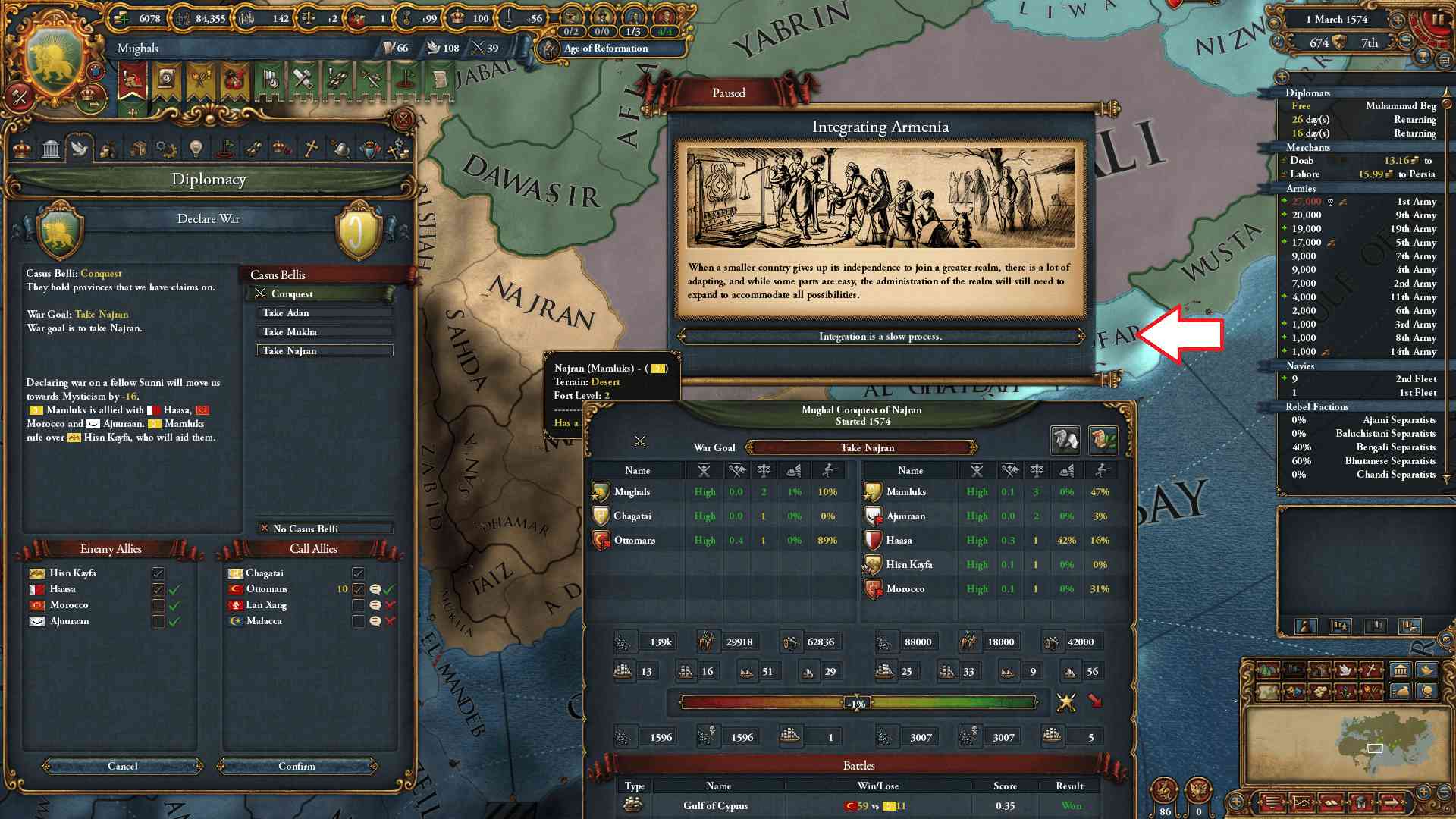 1584/03 Sindhに宣戦布告。敵同盟はHaasa、Gujarat(他に同盟が居なかったので共戦国に指定)