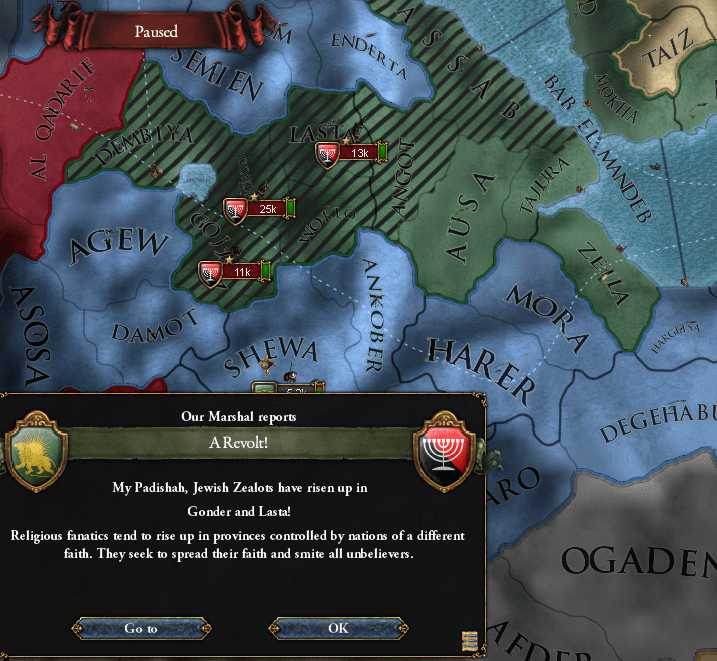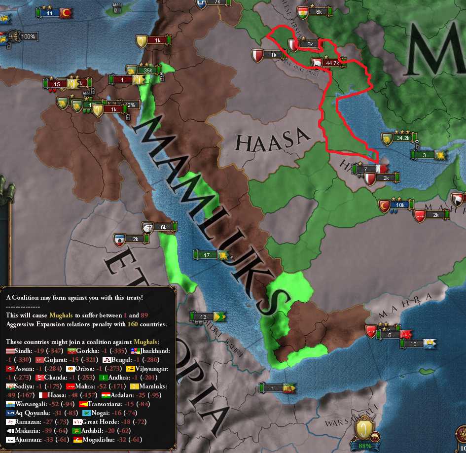 赤線内がHaasaから獲得した領土。狂信者が道に迷わずインド方面に来られるよう道路整備 聖地エルサレムを獲得。ユダヤ化が待ち遠しい