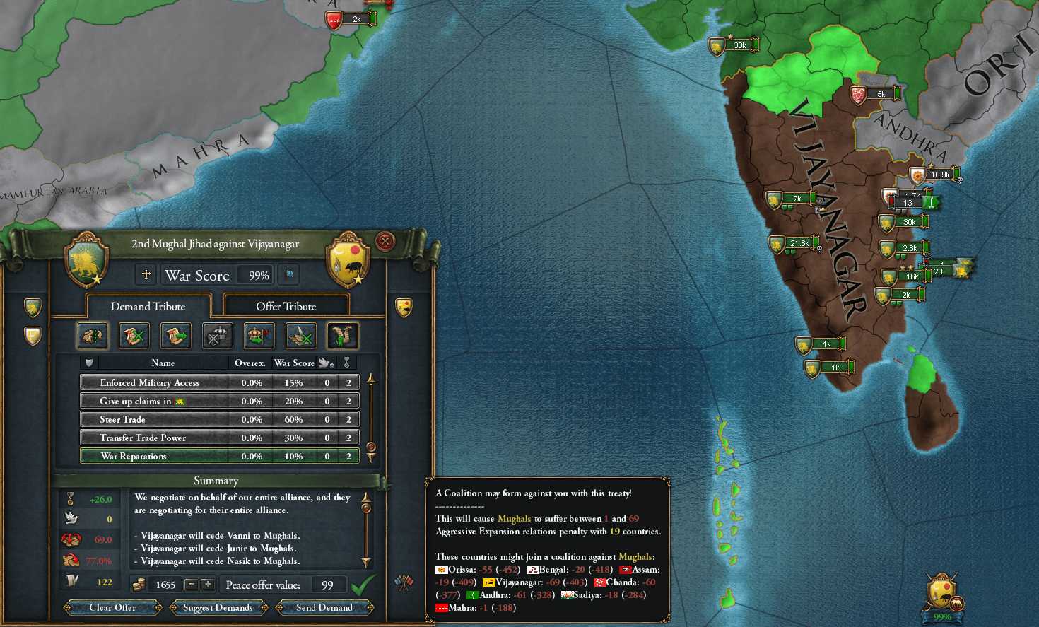 1587/?? Vijayanagarに宣戦布告。敵同盟はBengal、Gorkha、Jharkland