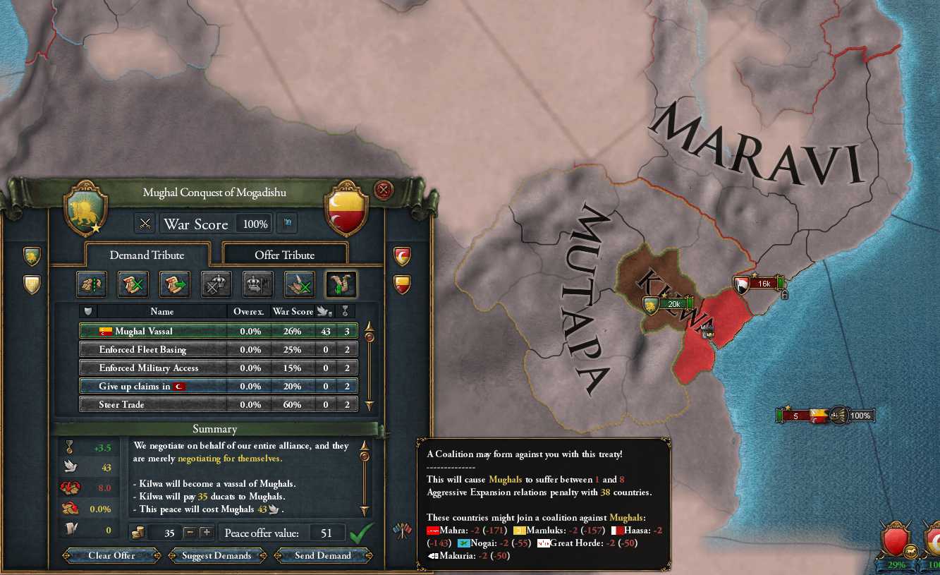 1598/01 Kilwa個別講和。属国化。外交枠を超過してしまった。貴重なDIPが…