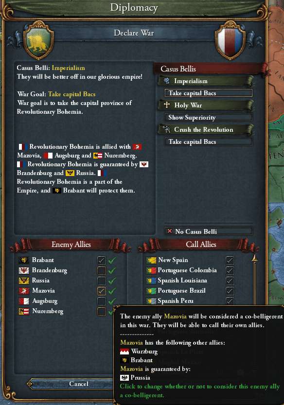 1745/05 Revolutionary_Bohemiaに宣戦布告。Ottomansに参戦要請。