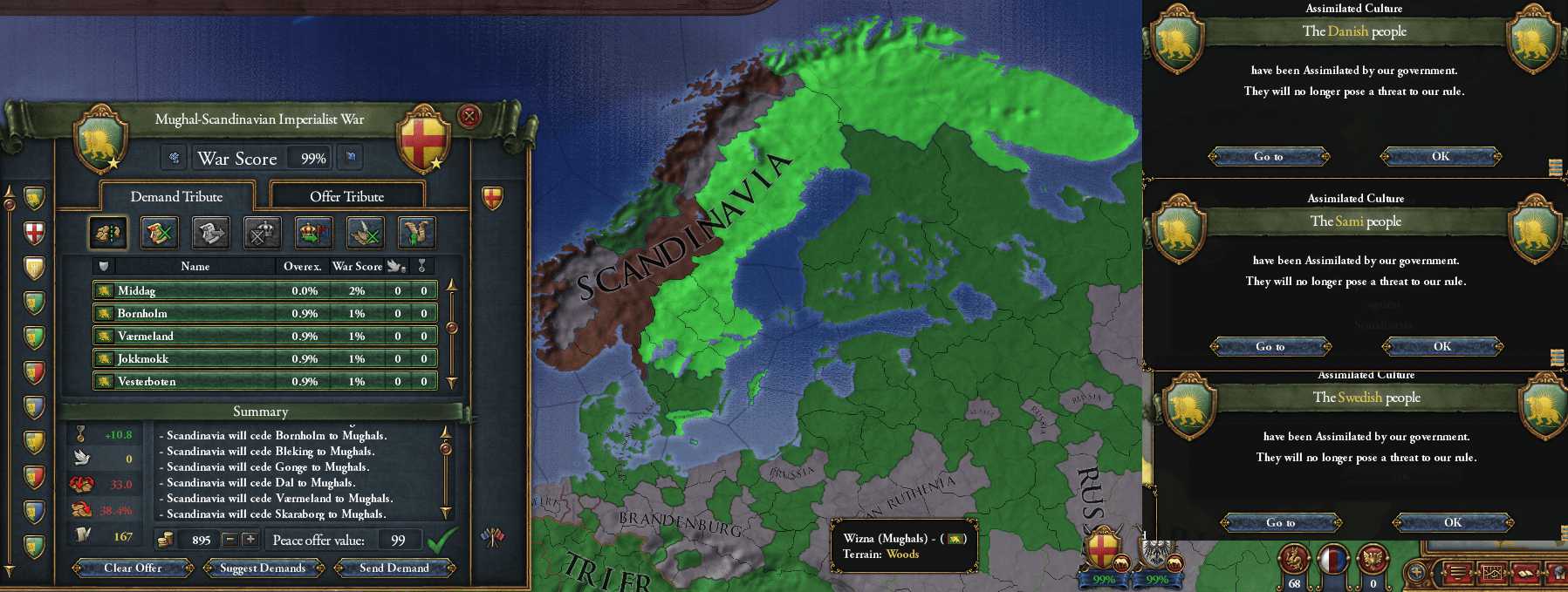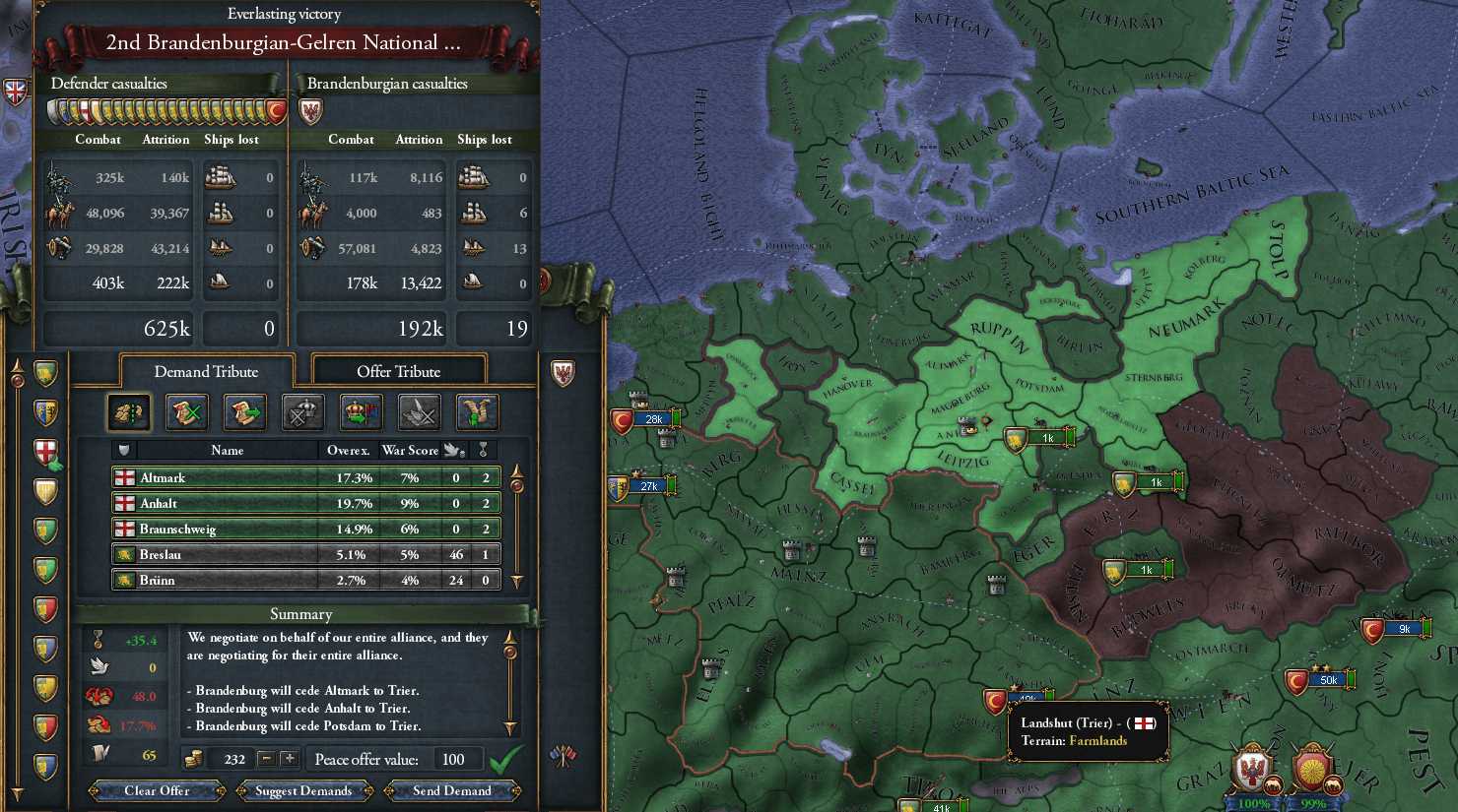民族主義CBだったので、なるべくTrierに割譲させた(ポンメルン文化はMughalsに割譲) 犠牲者の半分弱はOttomans軍のもの