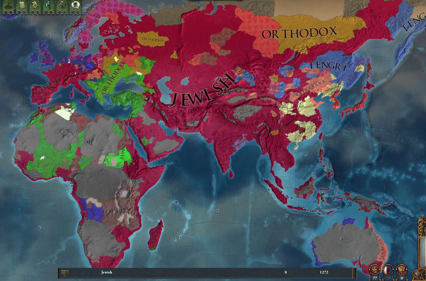 前話から21年で1272-1075=197(州)。引き続き9州/年は上回っている。超過分は属国による自力改宗分が押し上げているのだろう