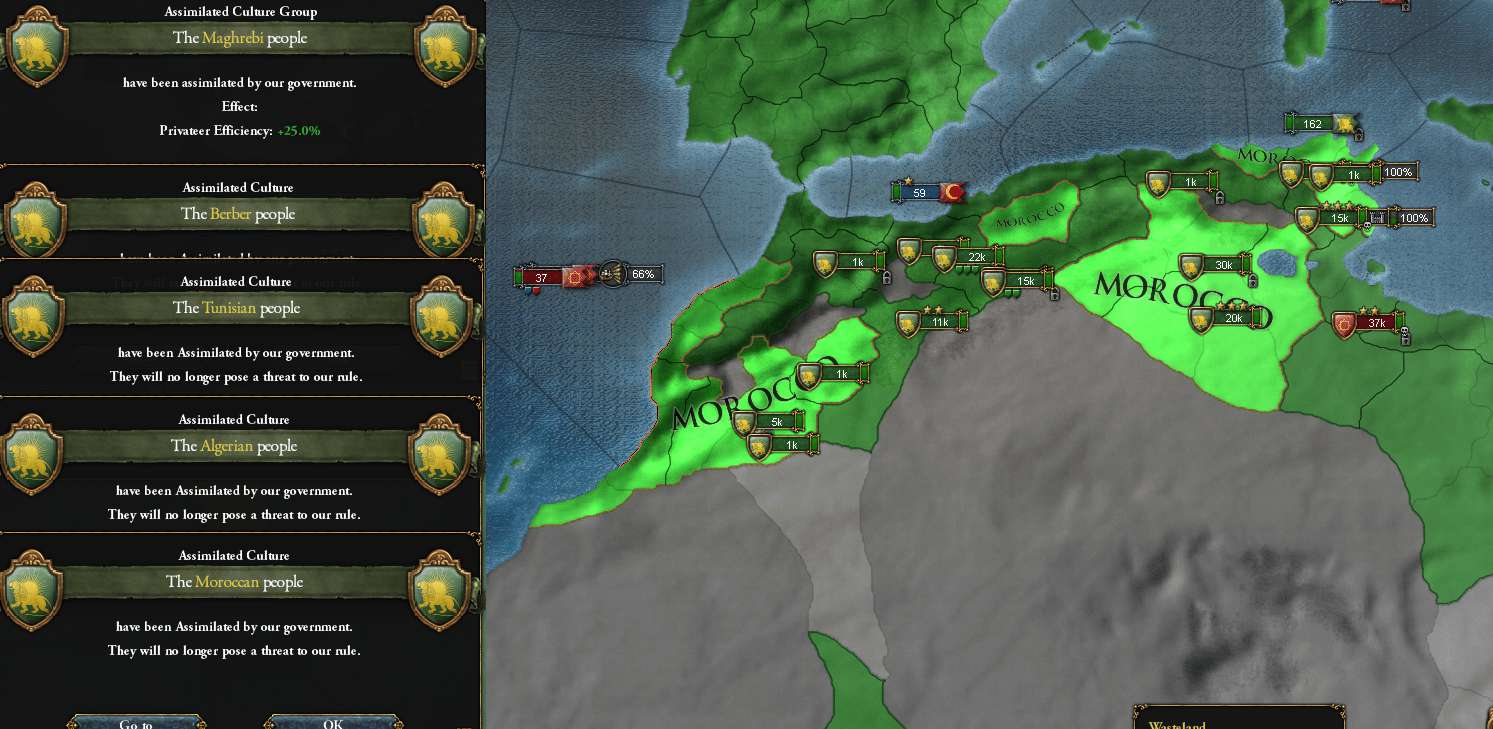 ウゴル文化グループの同化ボーナスで威信自然減-1%も獲得。まあないよりは…