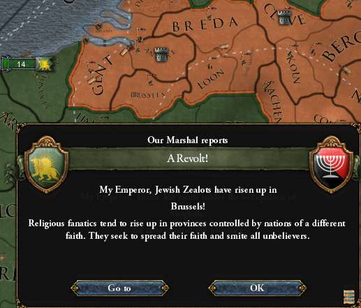 そもそも宗教の強制をして国教がユダヤ教のTrierで、なぜユダヤ狂信者が育ったのかがよく分からない 少し前にBrabantから獲得した州なのに、なぜ分離主義者でなかったのだろうか?