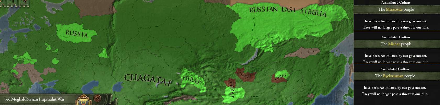 ようやくモスクワ文化を同化。シベリア植民も全てモスクワ文化なのでやたら広い