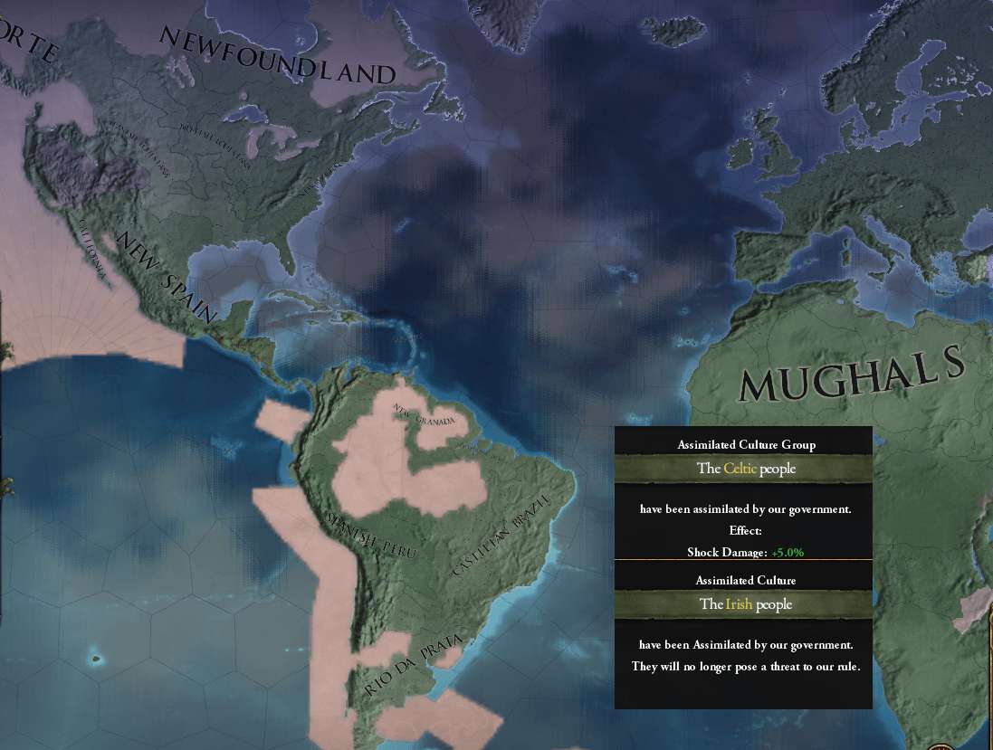 1815/08 Spanish_Columbiaにガラパゴス諸島を下賜してしまい、イベリア文化グループの同化ボーナス(植民地成長+10/年)を失う