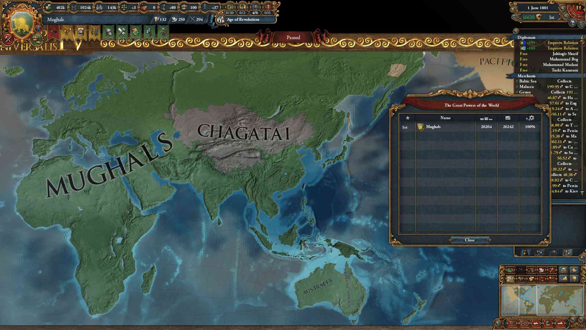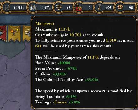 1809/01 気づいたら人的資源が1131kに。探検アイデア完了後に貴族+探検ポリシー(人的資源+33%)も有効にしていた