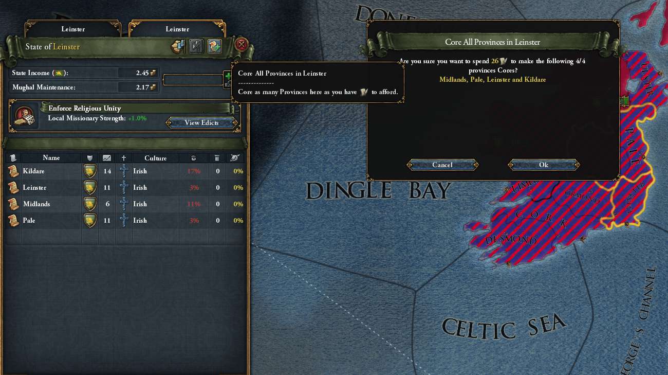 良く考えずにクリックしてしまった。 1州でも下賜(恐らく戦争で失っても同じ)してしまうと、文化グループの同化ボーナスは失われるが 一度同化した文化(今回はカステーリャ文化)が未同化に戻ったりはしない