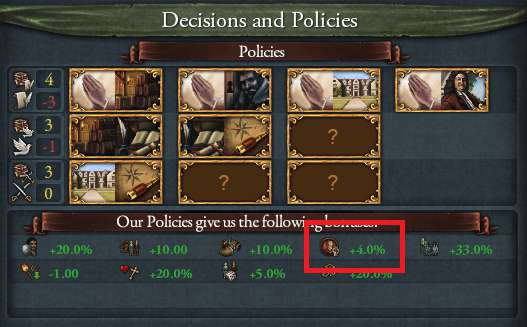 ポリシーで布教強度+4%。狂信的な先代皇帝の頃の布教強度+16.5%に戻った