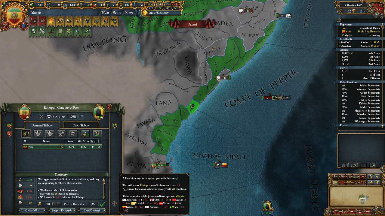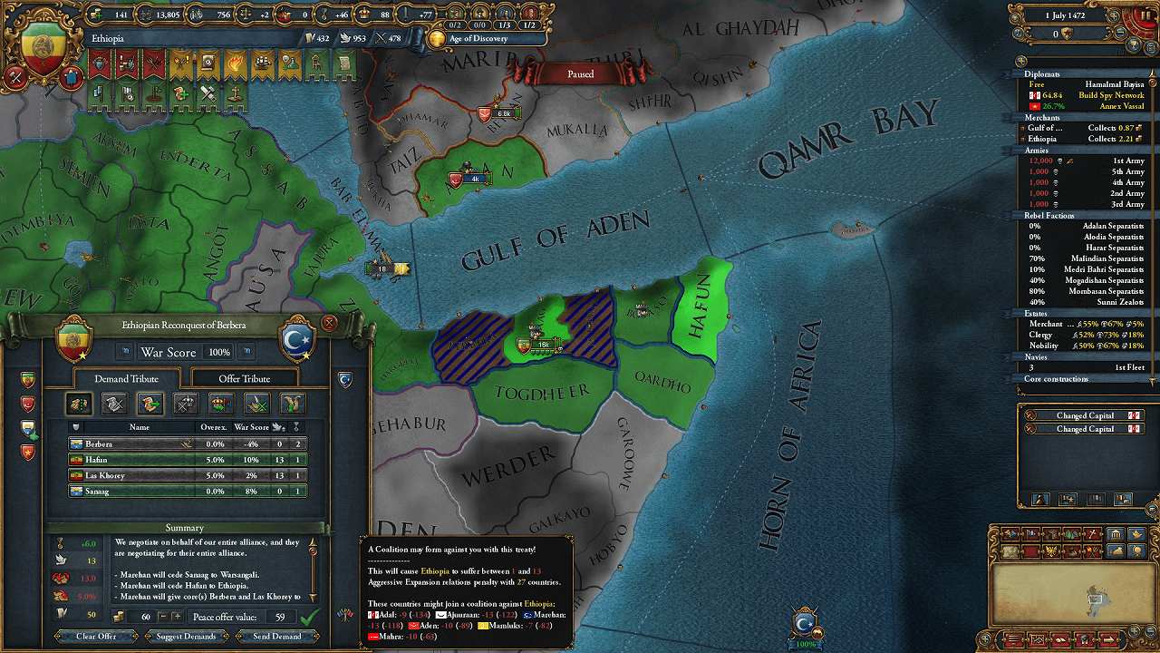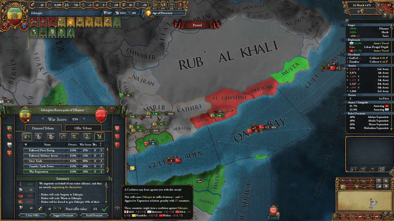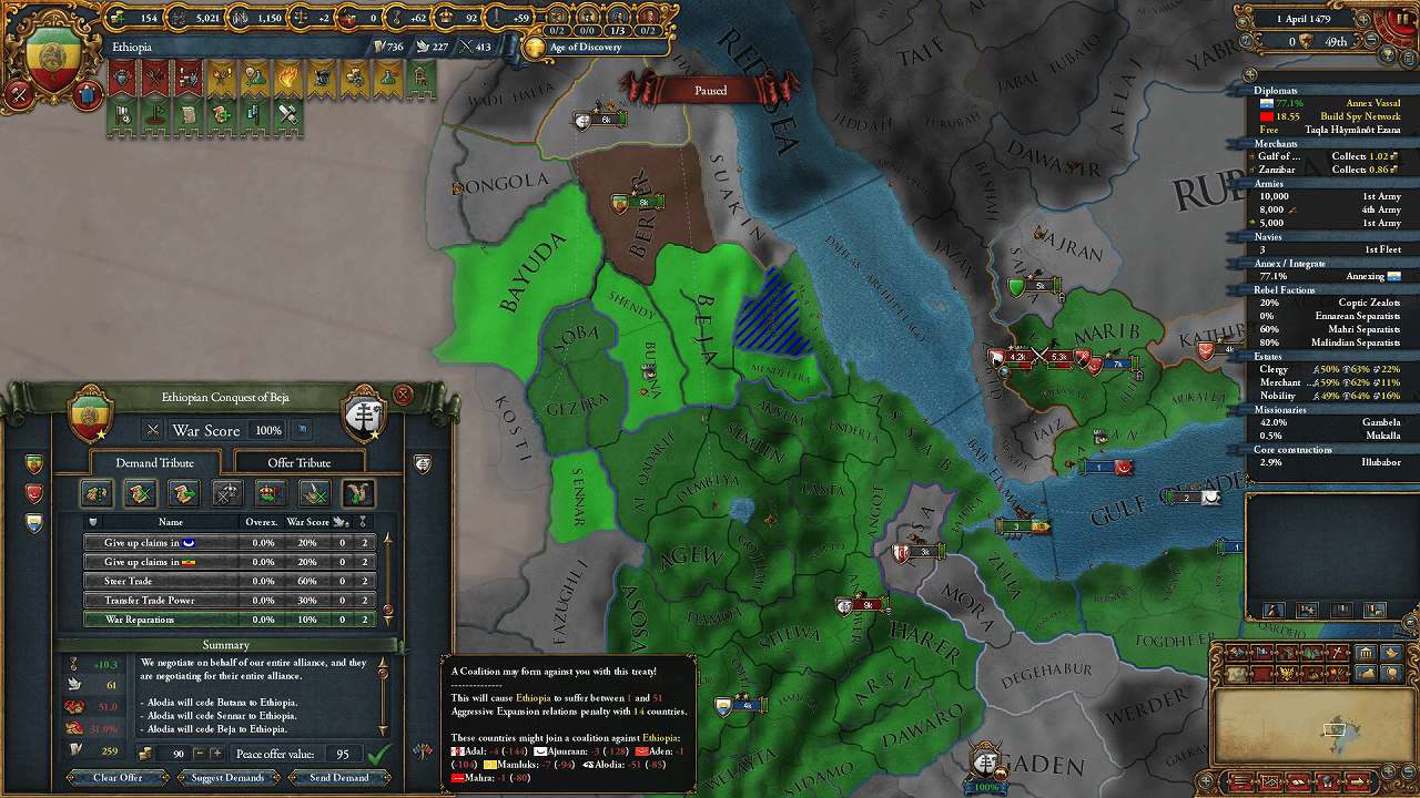 Damot併合で空いた外交枠はQara_Qoyunluとの同盟に使用