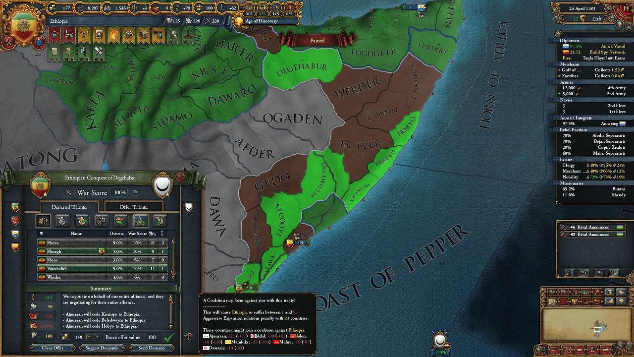 Warsangaliにコア返還+COTのMOGADISHU割譲+侮辱etcで終戦