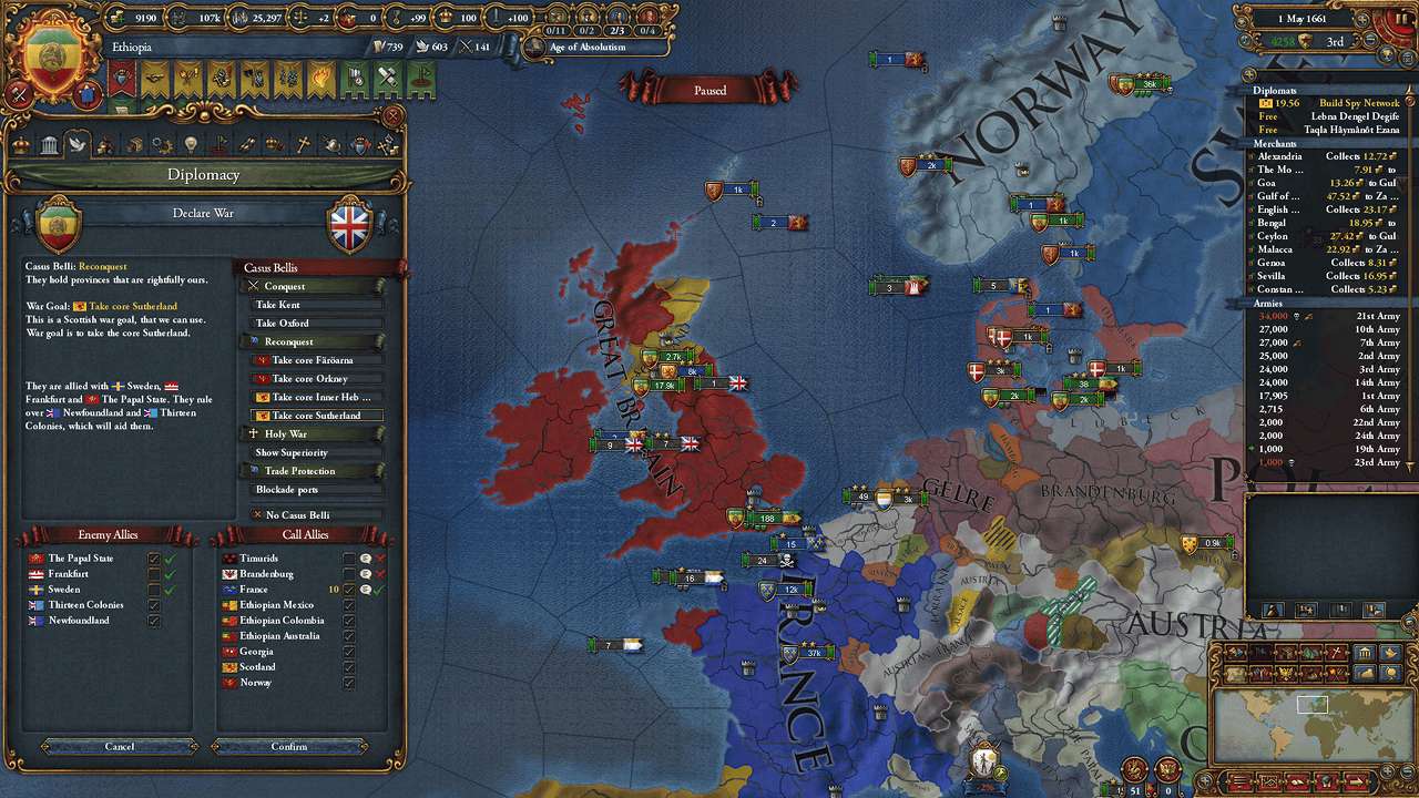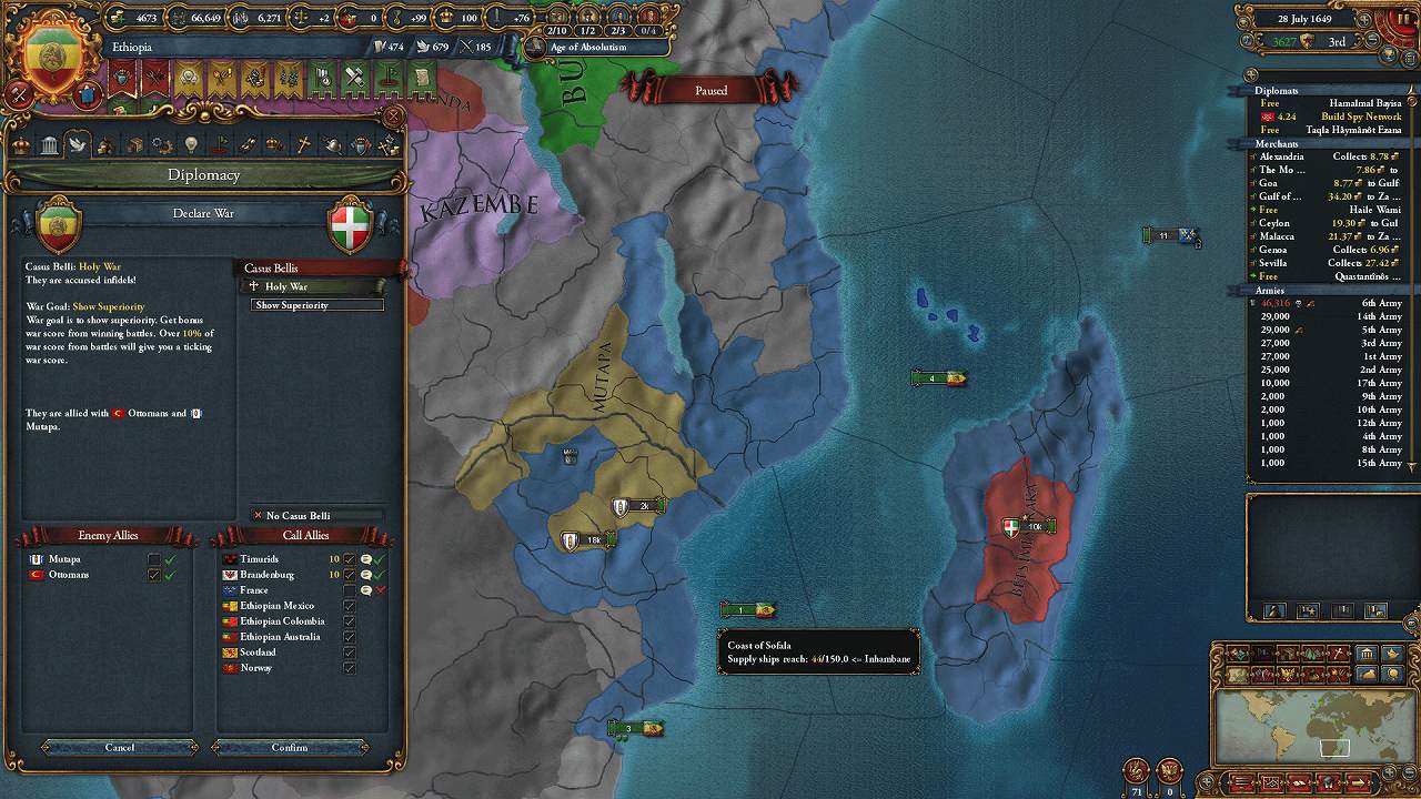 (Ottomansに宣戦の場合、TimuridsとBrandenburgがビビッて召集に応じてくれなかった)