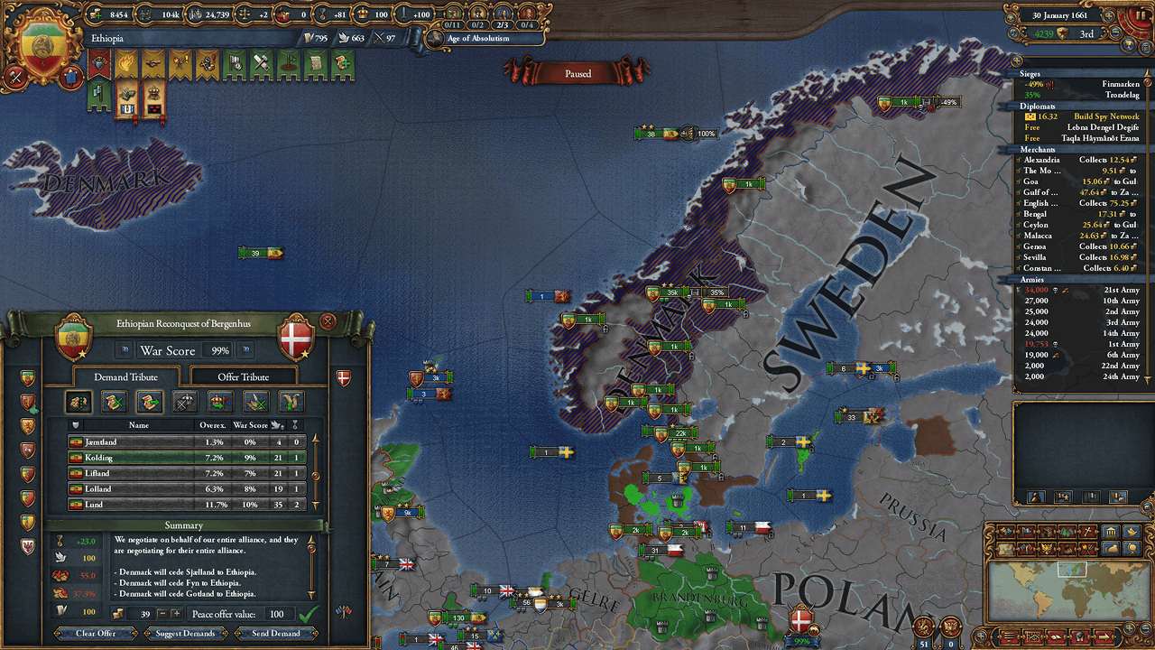 終戦。Norwayのコア返還とバルト海の島々を獲得