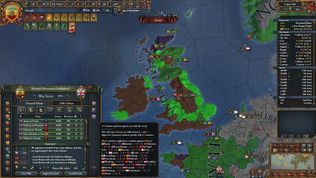 終戦。Scotlandのコア返還に加えNorwayの種地とLONDON確保。