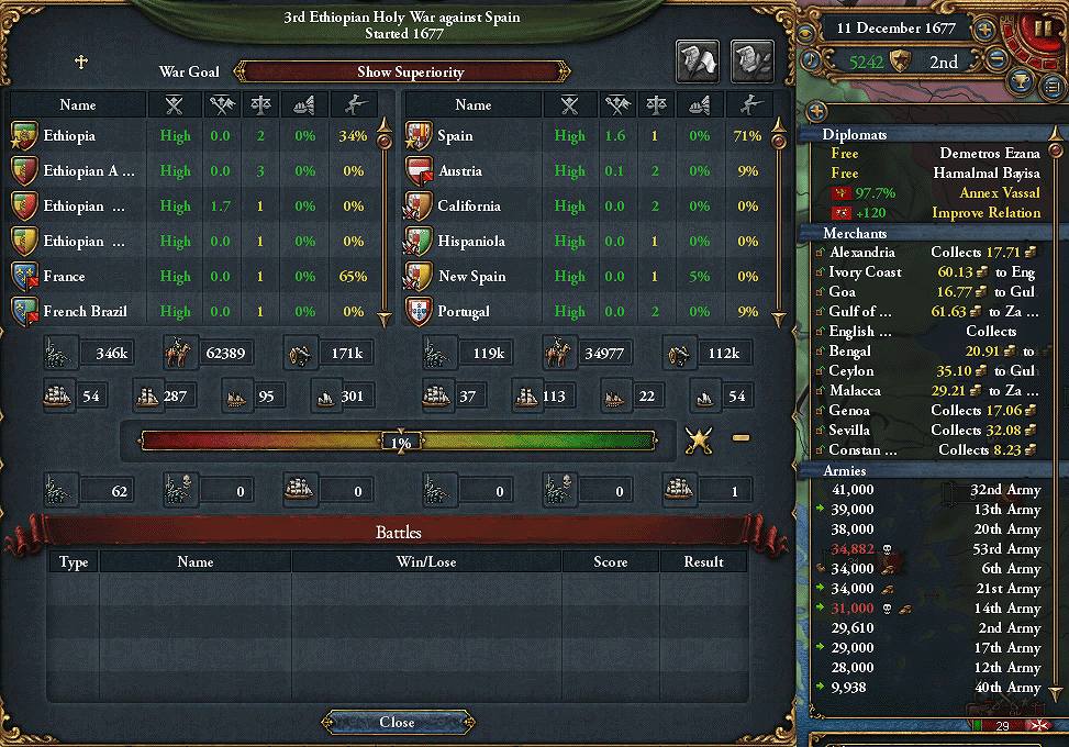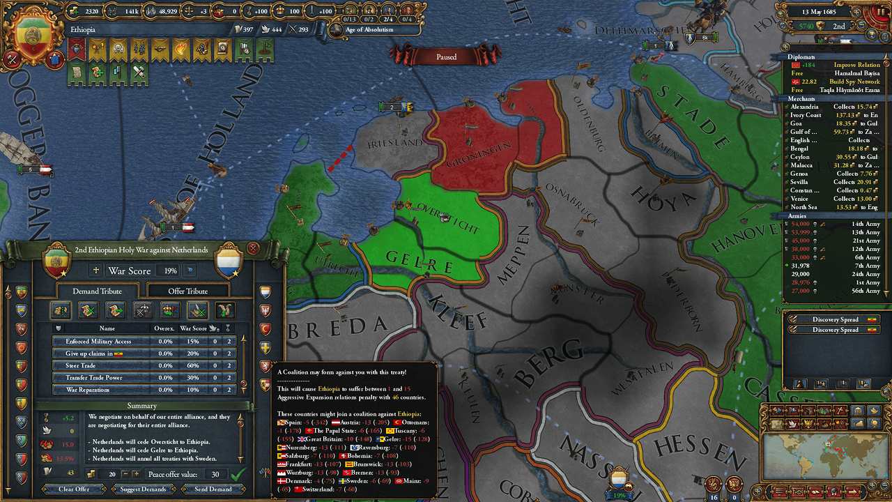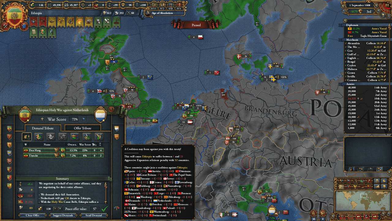 相手にはOttomansやPolandも含まれたが、陸海共に戦力は優勢だった