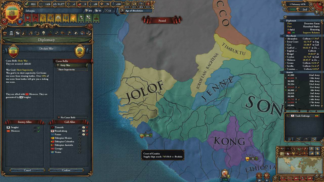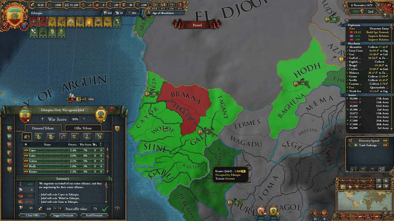 Jolofに宣戦→Moroccoを釣り出して属国化→SpainにMoroccoのコアを返還させる