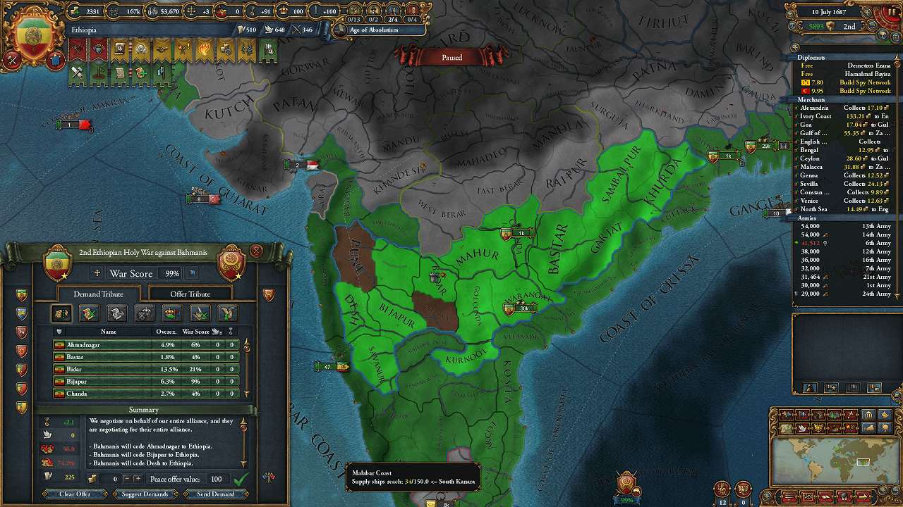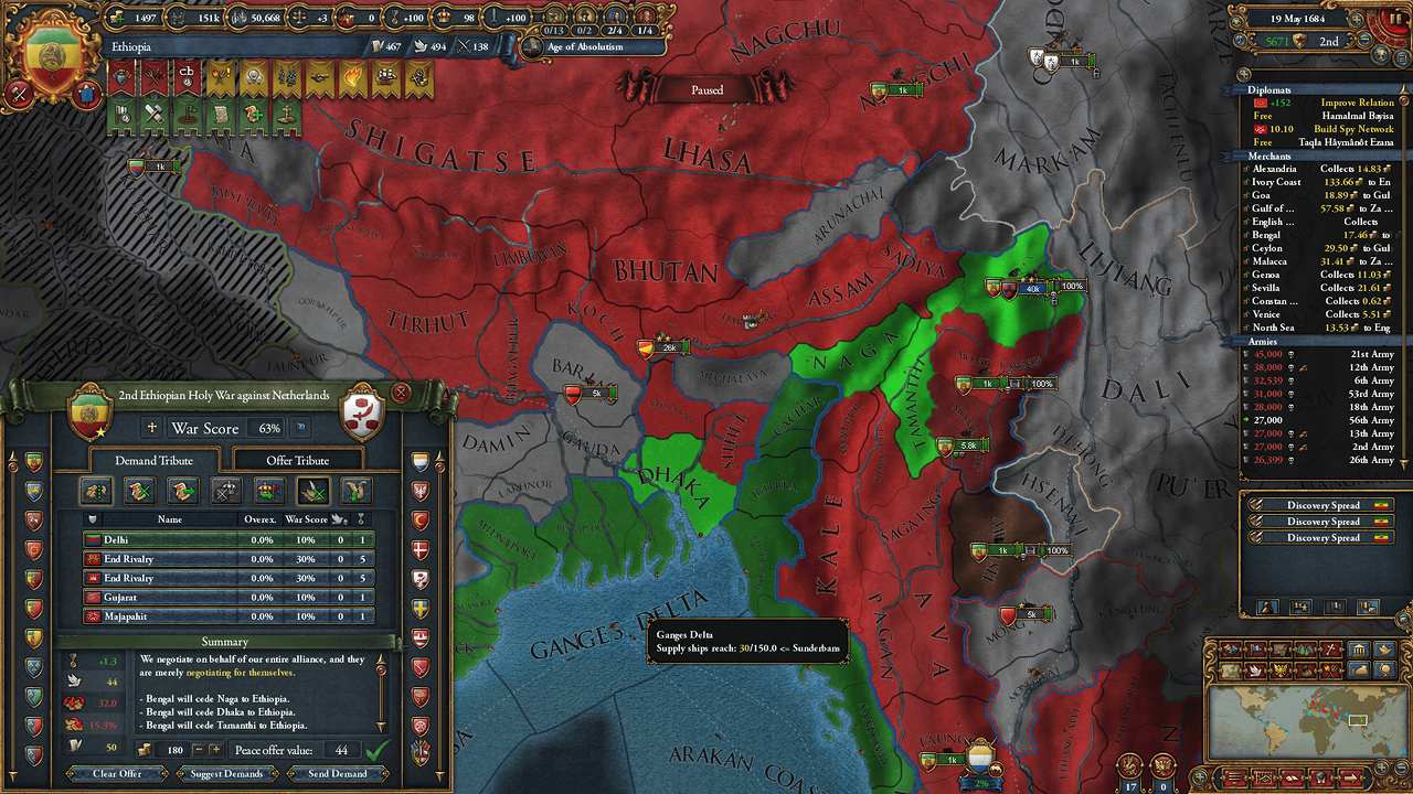 ようやくインドから明への陸路開通。すでにRussiaが明と隣接していたため天命喪失間近