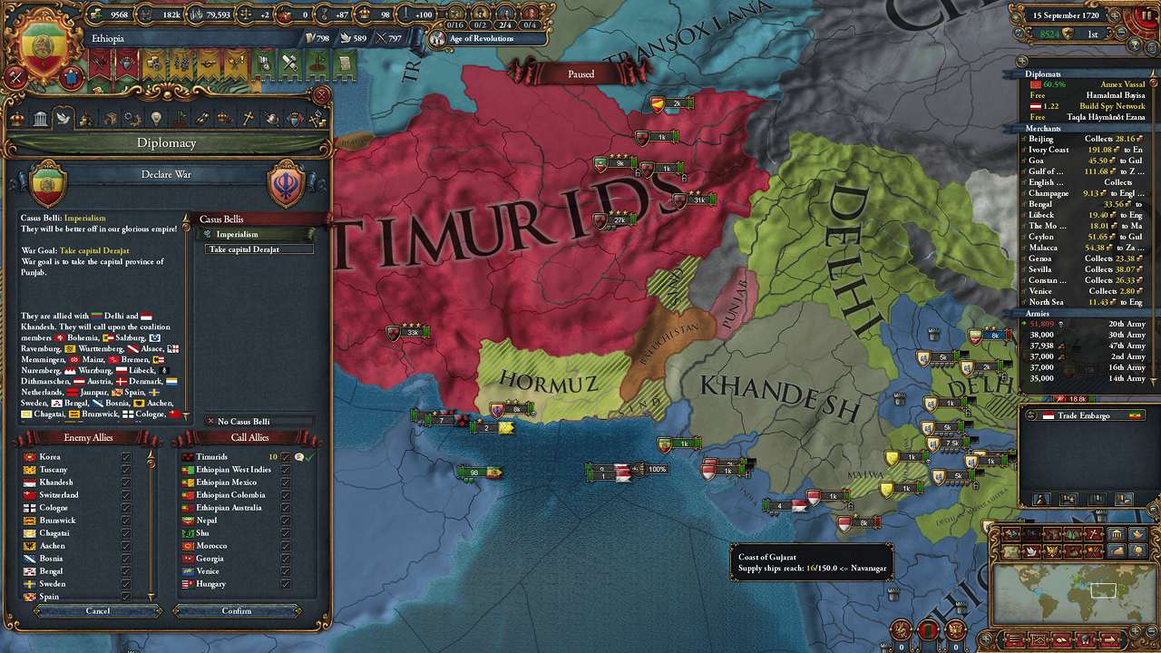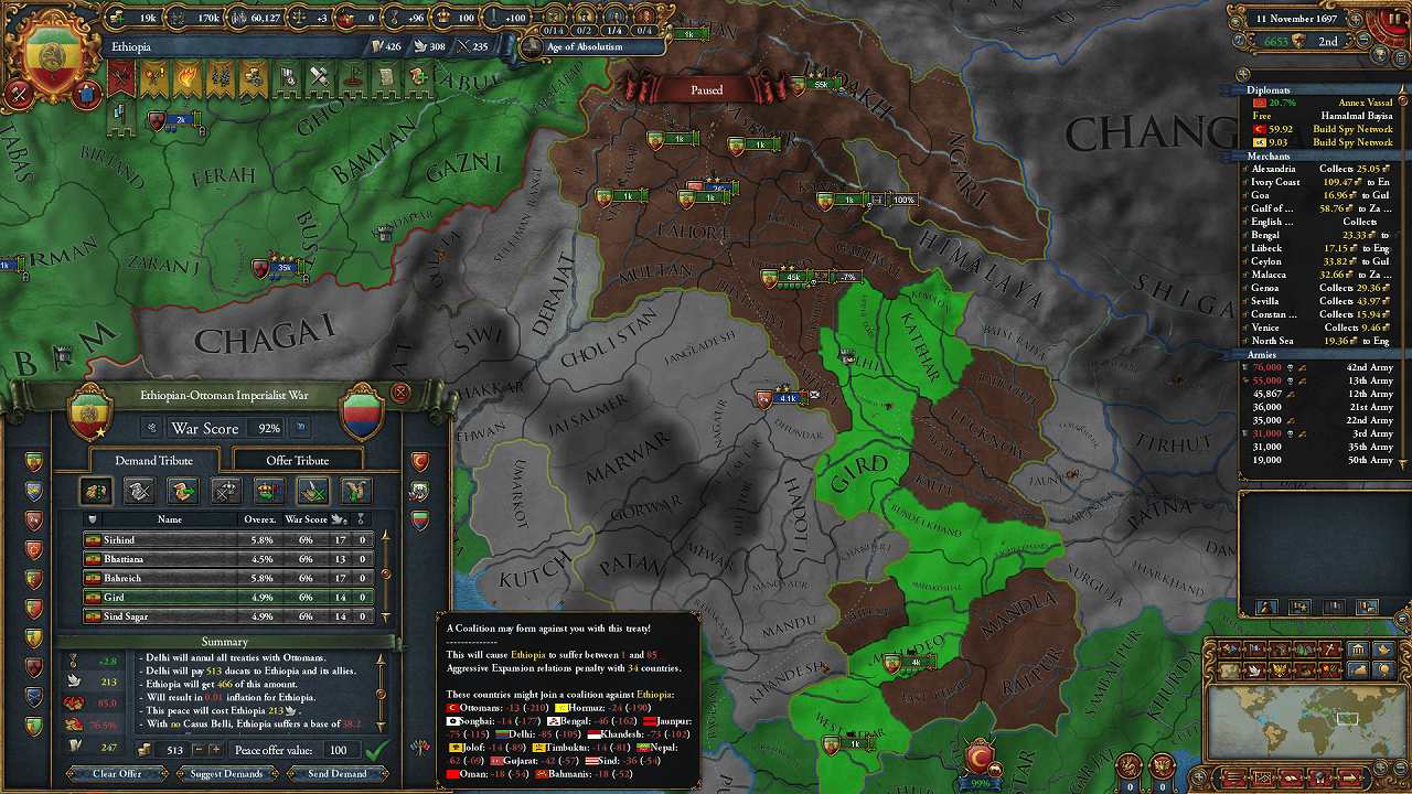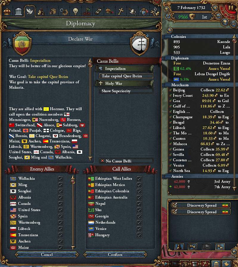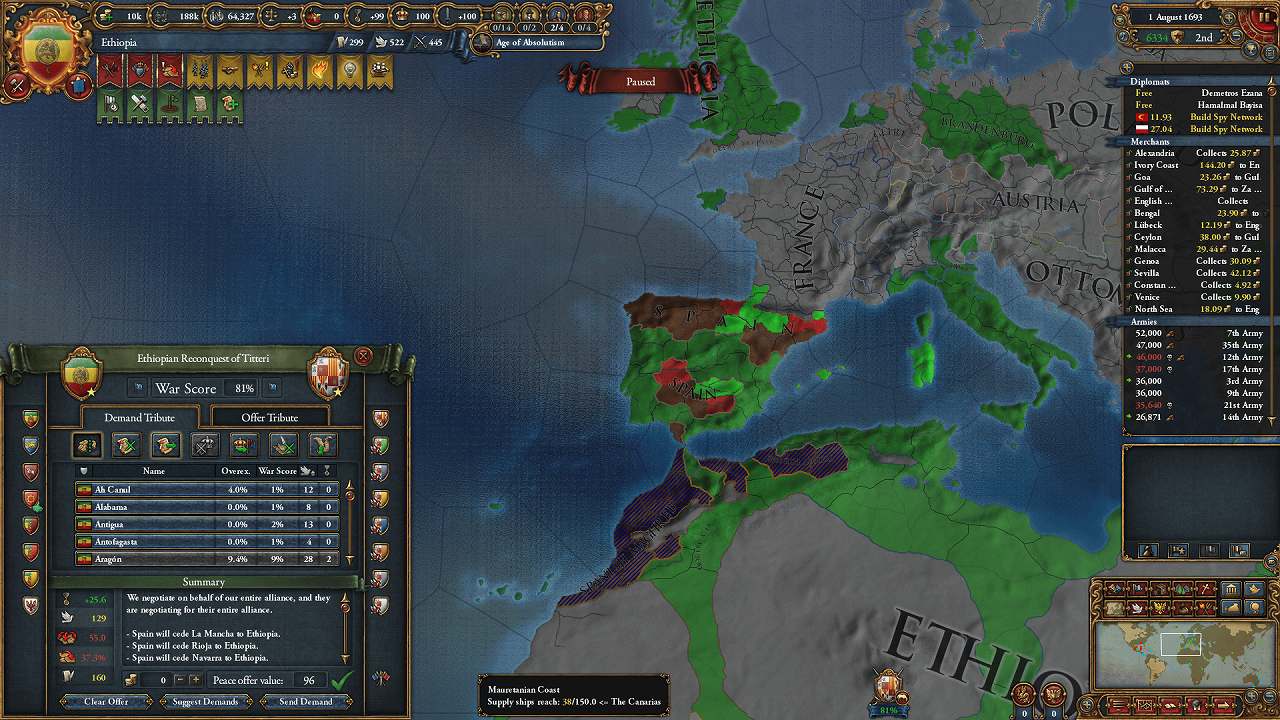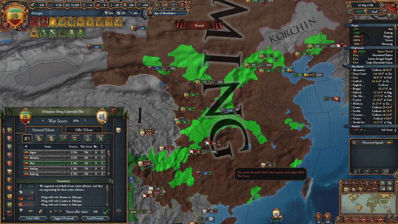 割譲:明 4、Songhai 11、Albania 2、Switzerland 2、Brandenburg 5、Poland 3、Lubeck 3、Chagatai 7、Transoxiana 1、Riga 3、Makuria 1