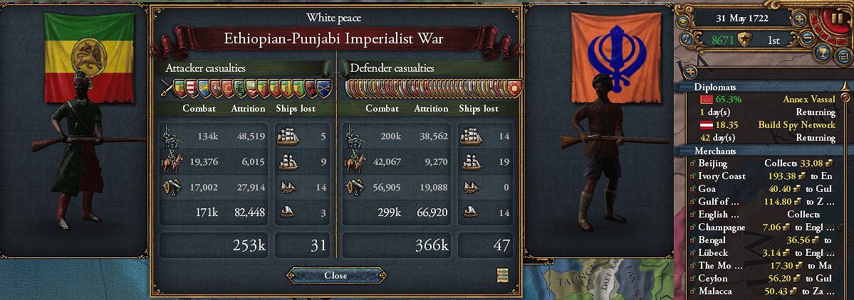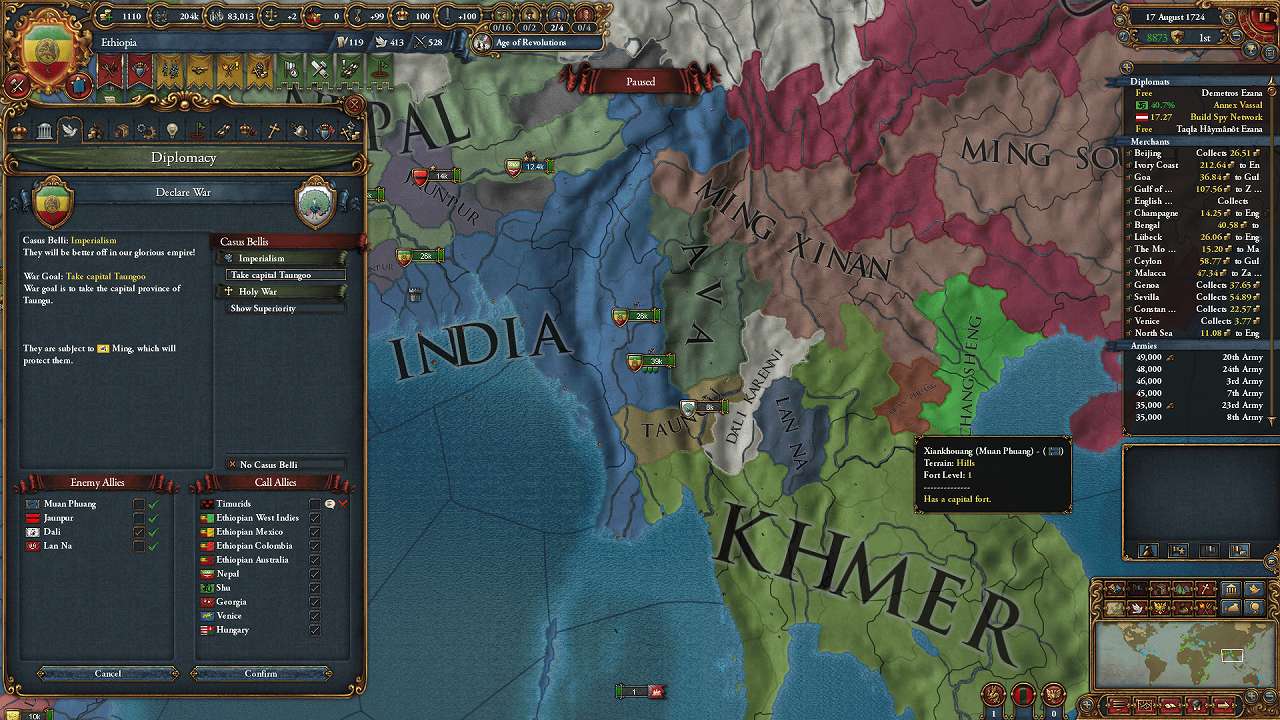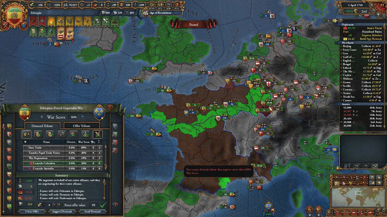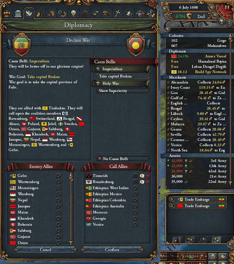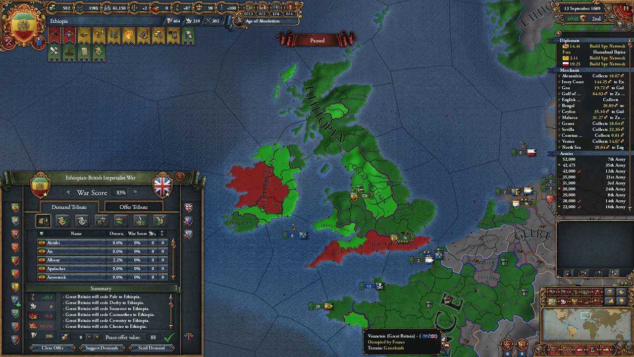割譲:明 4、Songhai 11、Albania 2、Switzerland 2、Brandenburg 5、Poland 3、Lubeck 3、Chagatai 7、Transoxiana 1、Riga 3、Makuria 1