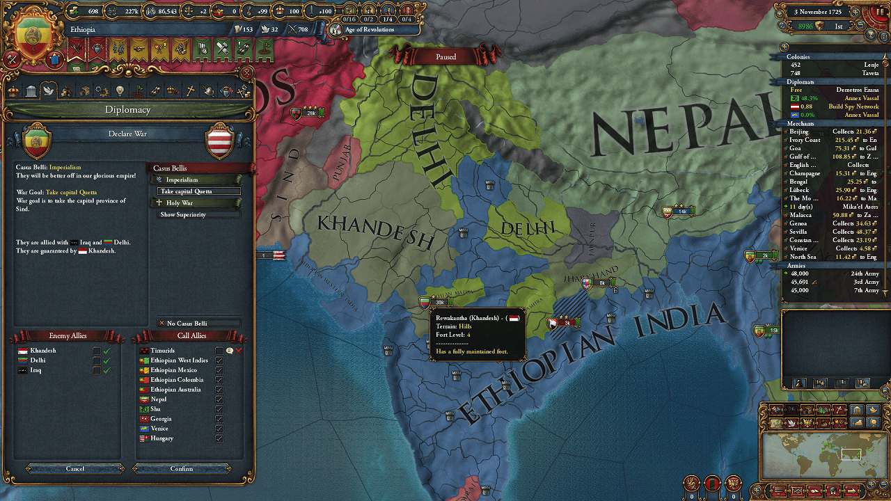 割譲:Iraq 4、Khandesh 8、Delhi 10