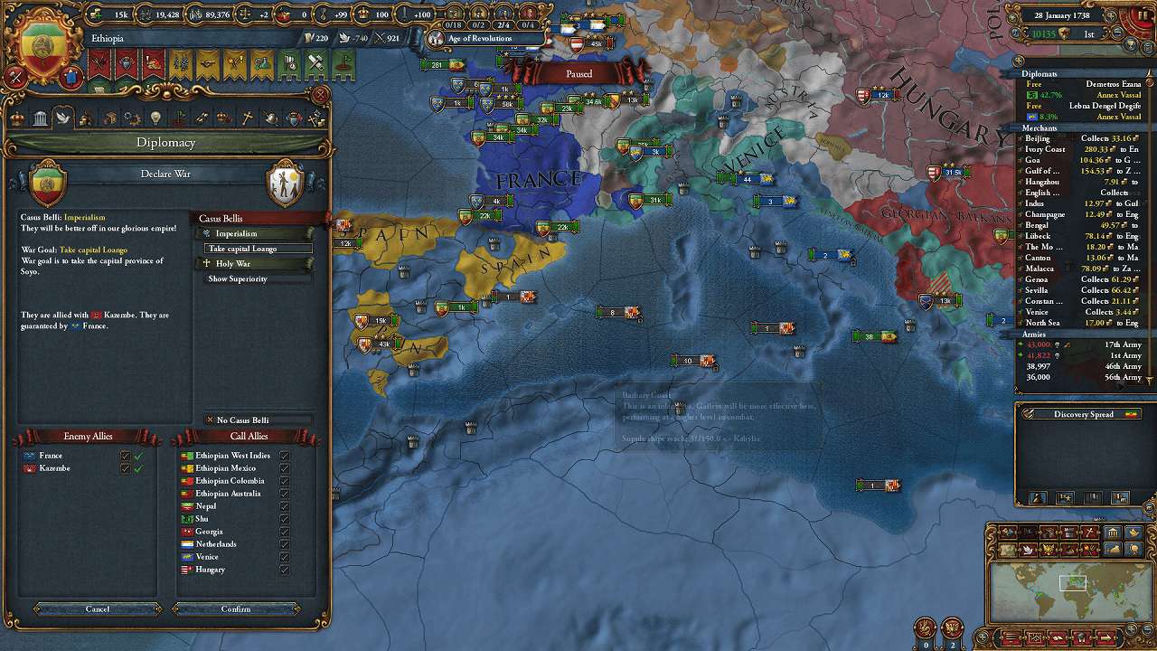 割譲:Buganda 4、Kazembe 5、France 5(PARIS含む)、Soyo 9